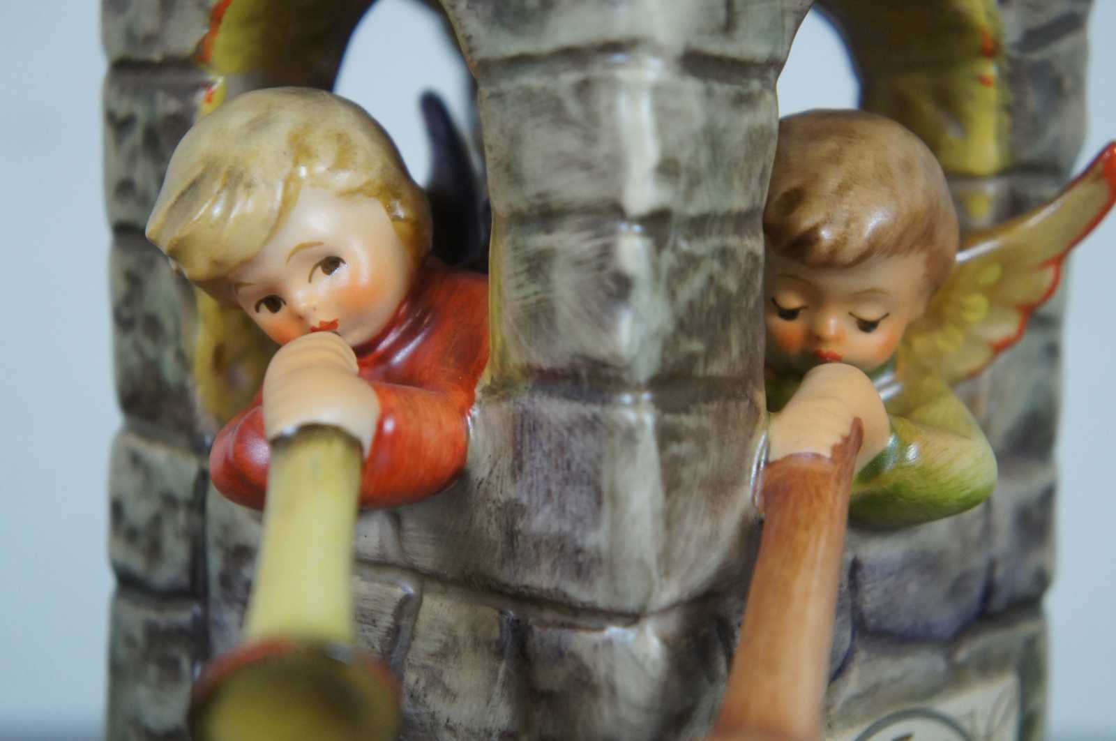 Vintage Goebel West Germany ceramic figurine/clock Call to Worship aka Glockenturm from the 1988 MI Hummel Century Collection. Features a stone bell tower with onion dome roof , clock face and two cherubs blowing horns. Clock is battery operated.