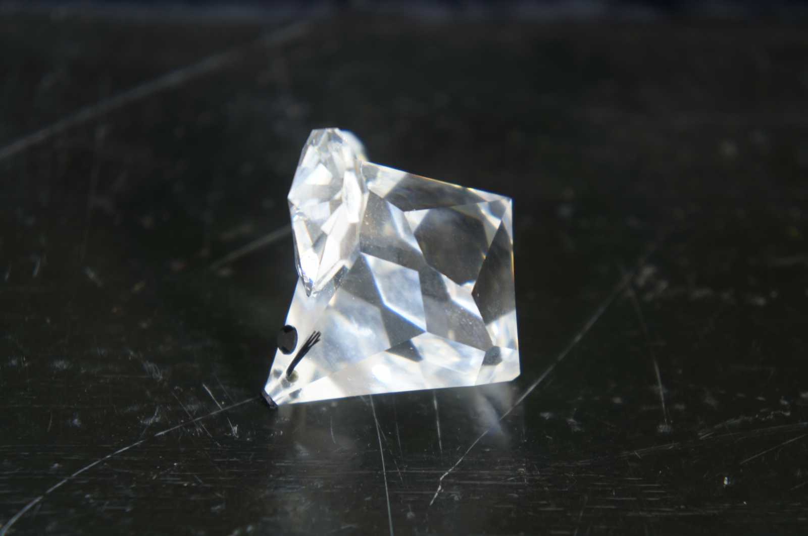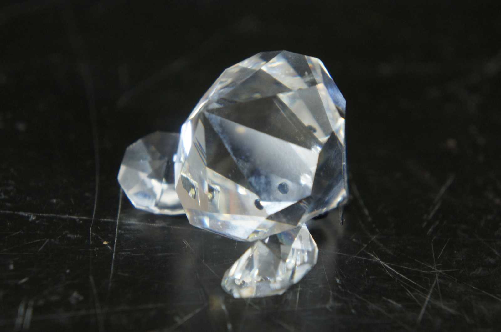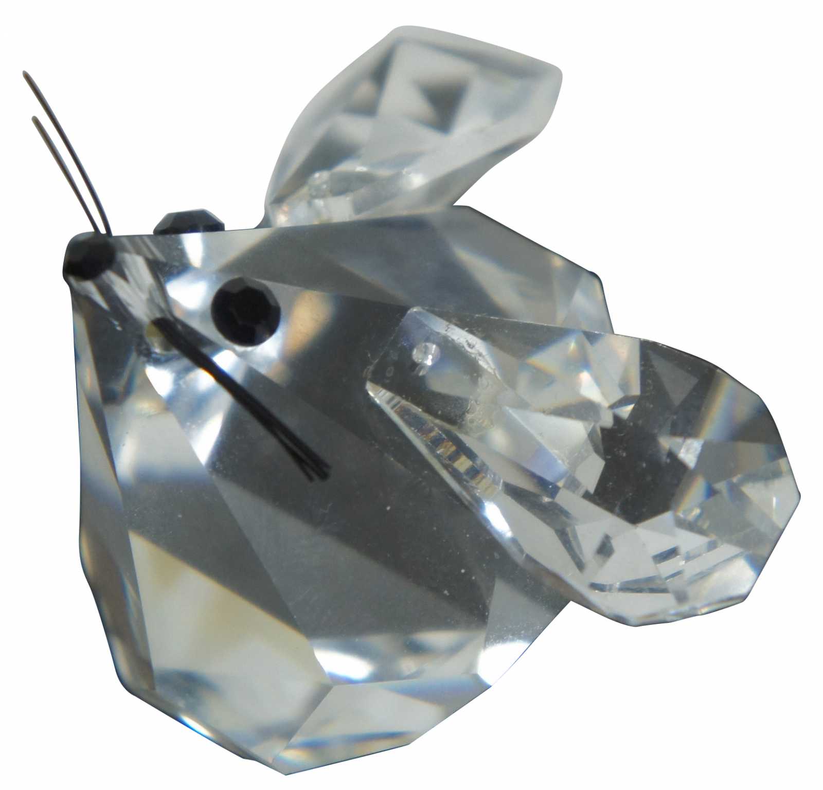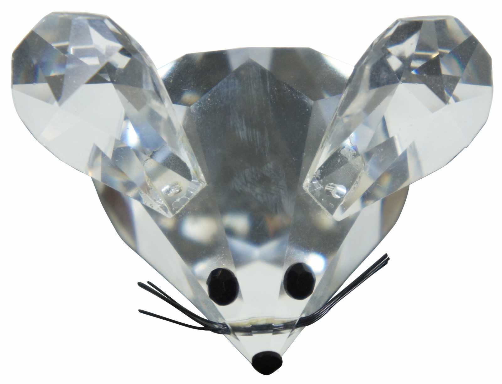 Swarovski crystal mouse figurine with a gem shaped body and black whiskers.