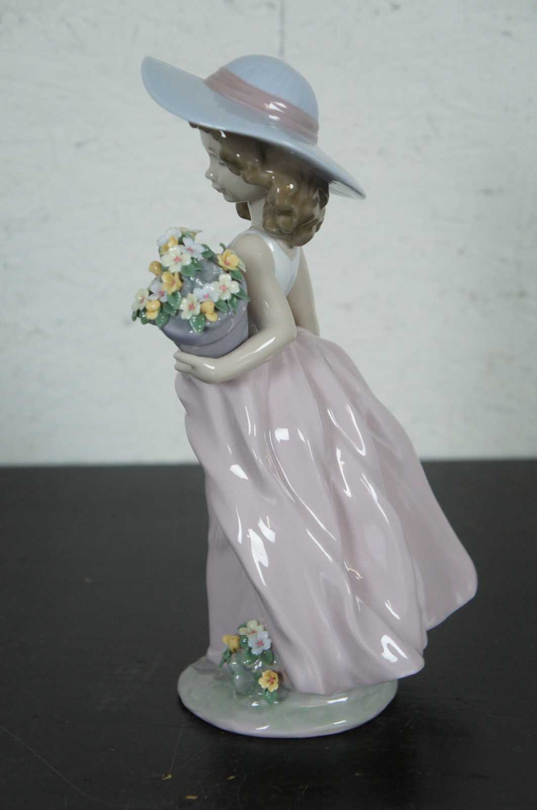 Lladro Spain 1999 Collectors Society porcelain figurine #7676 – A Wish Come True, portraying a girl in a large sun hat with a watering can and a pot of flowers.