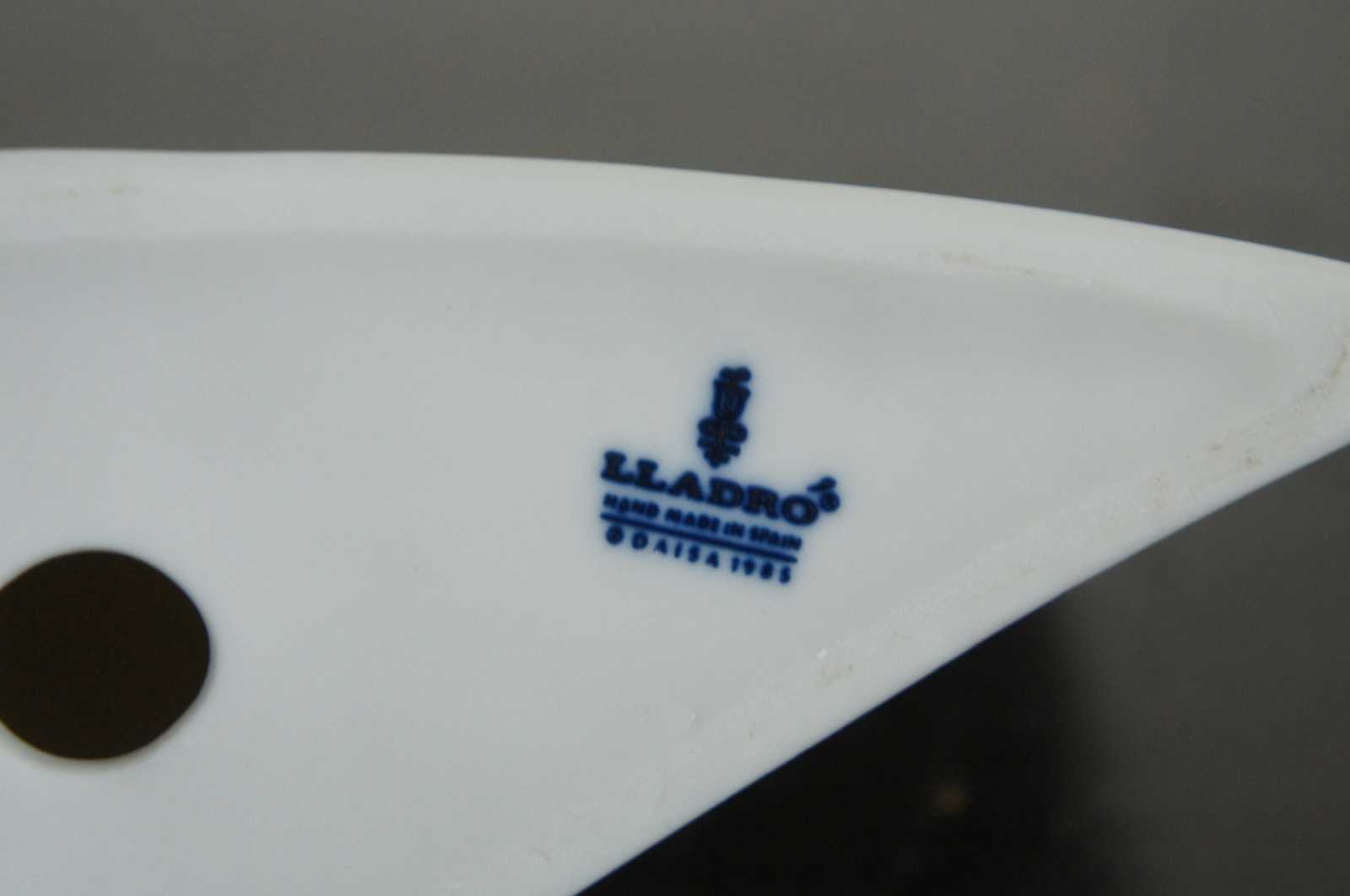 Lladro Spain Collector’s Society white porcelain plaque featuring Don Quixote seated in a chair with a rapier and book.