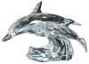 Swarovski crystal 1990 figurine “Lead Me,” featuring a mother and child (baby) dolphin pair leaping through ocean waves.