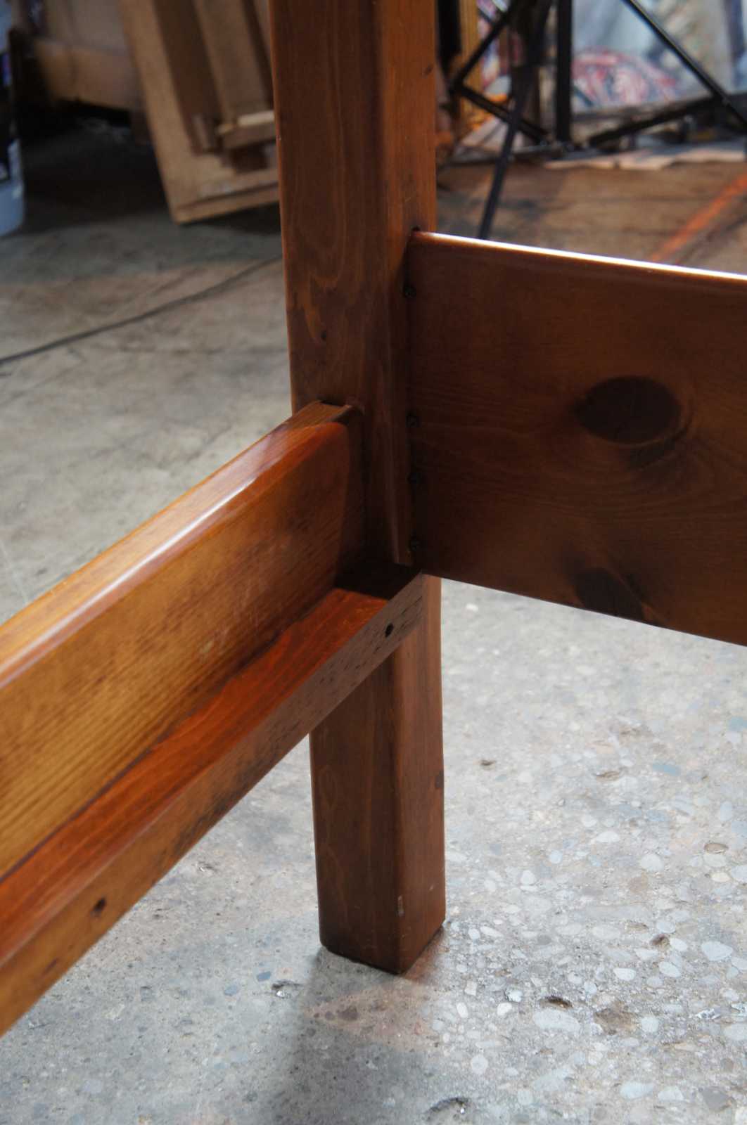 20th Century Colonial Revival Pencil Post. Made from pine with a canopy and finials.