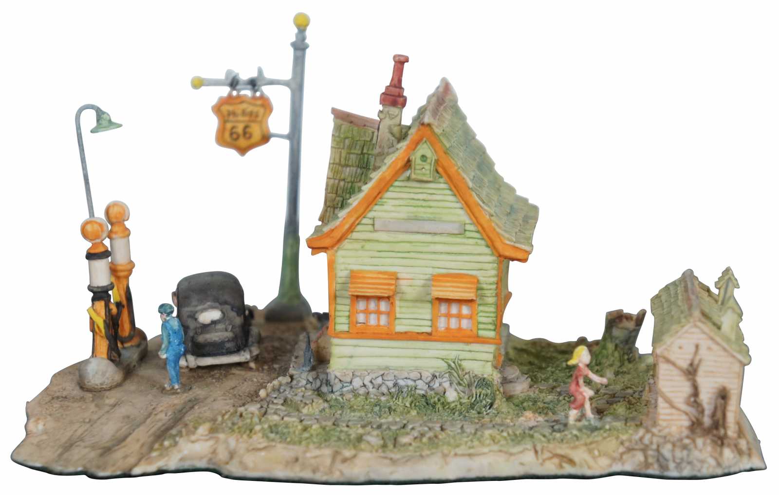 Schmid Route 66 Collection gas station figurine designed by Lowell Davis, titled “Just Check the Air” and numbered 1337/2500.