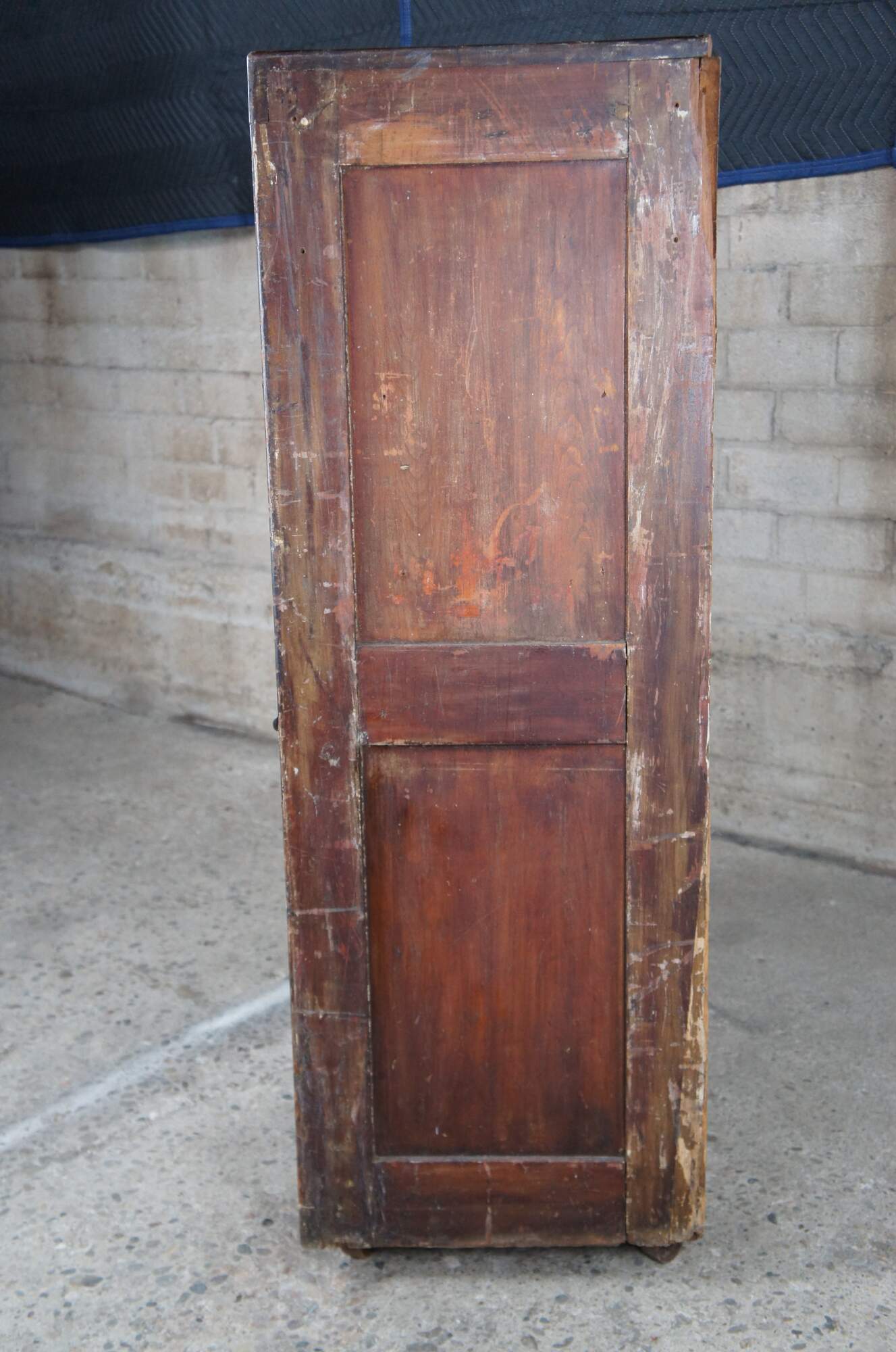 Wear and distressing commensurate age. Some missing drawers that have been replaced. Those that have been replaced were replaced with two traditional drawer along the lower left as well as longer wood panels to cover the missing drawer above. Missing one drawer, no glides on the bottom left drawers.