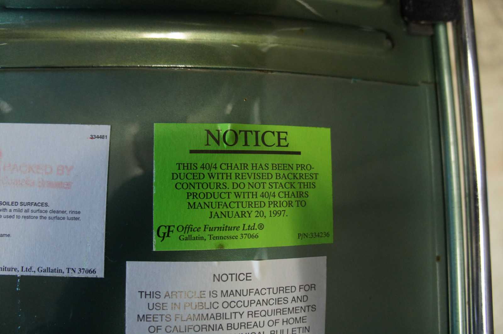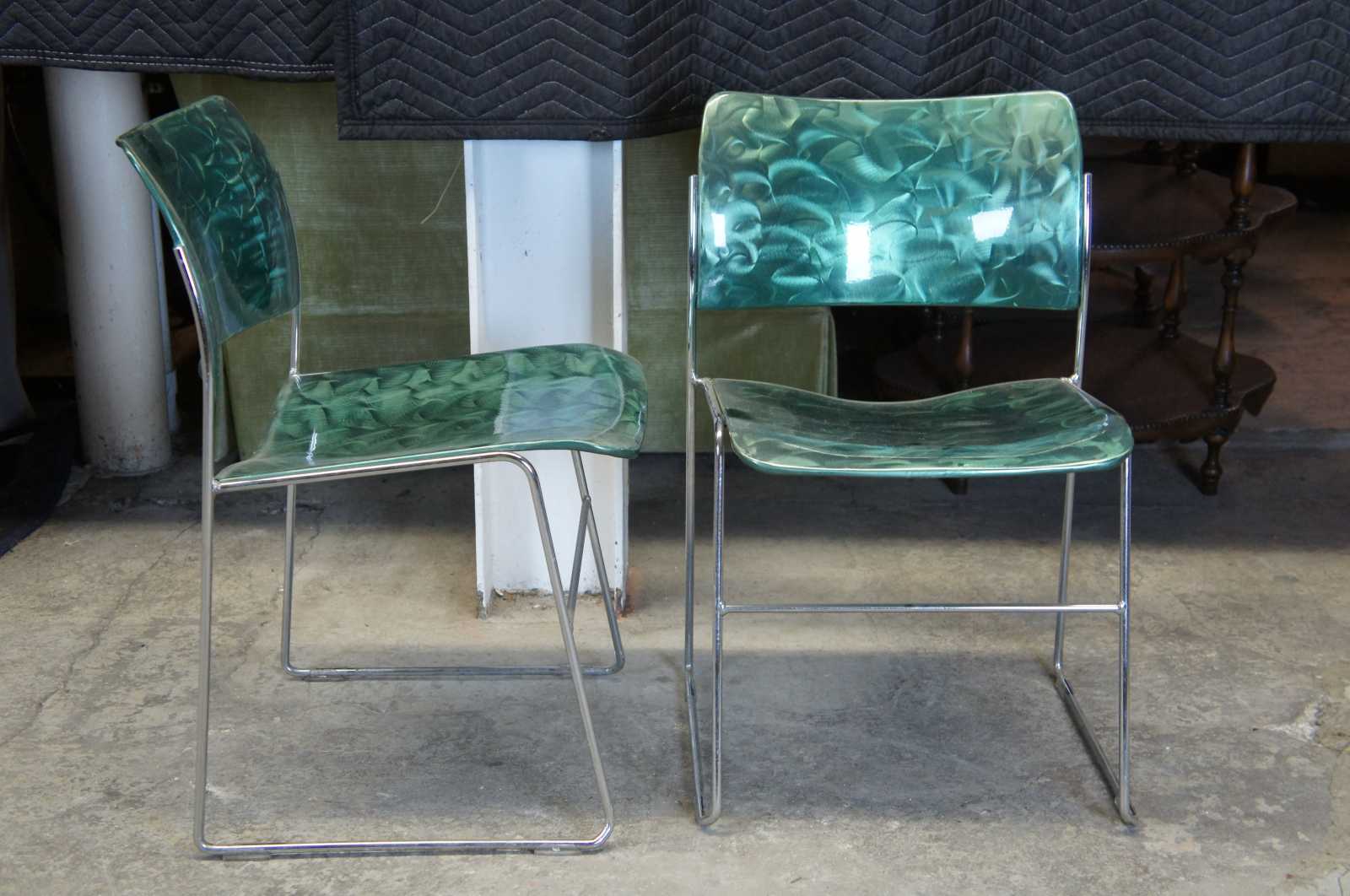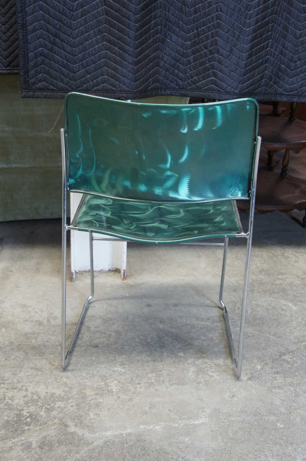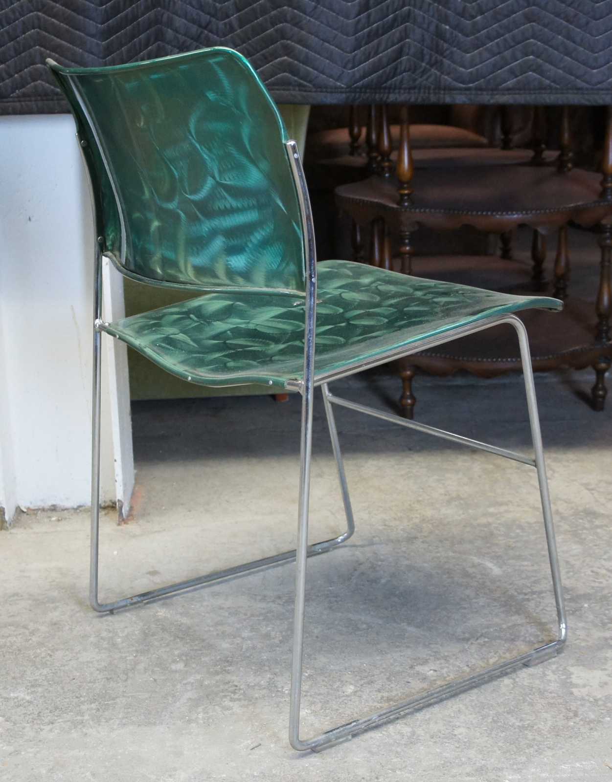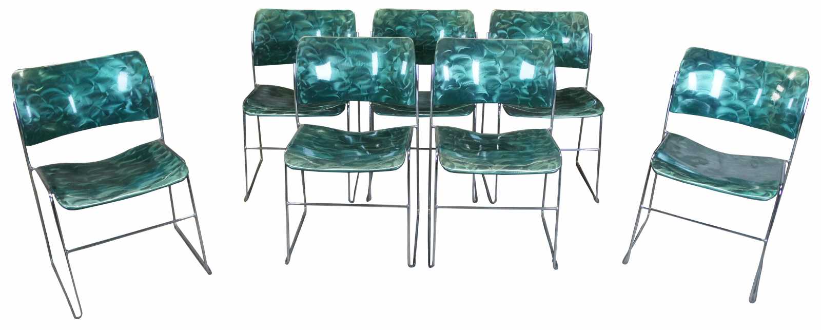 Here we have 7 40/4 chairs in their original Demi Glaze Green. Metal wire chrome frame and metal sculpted seat,