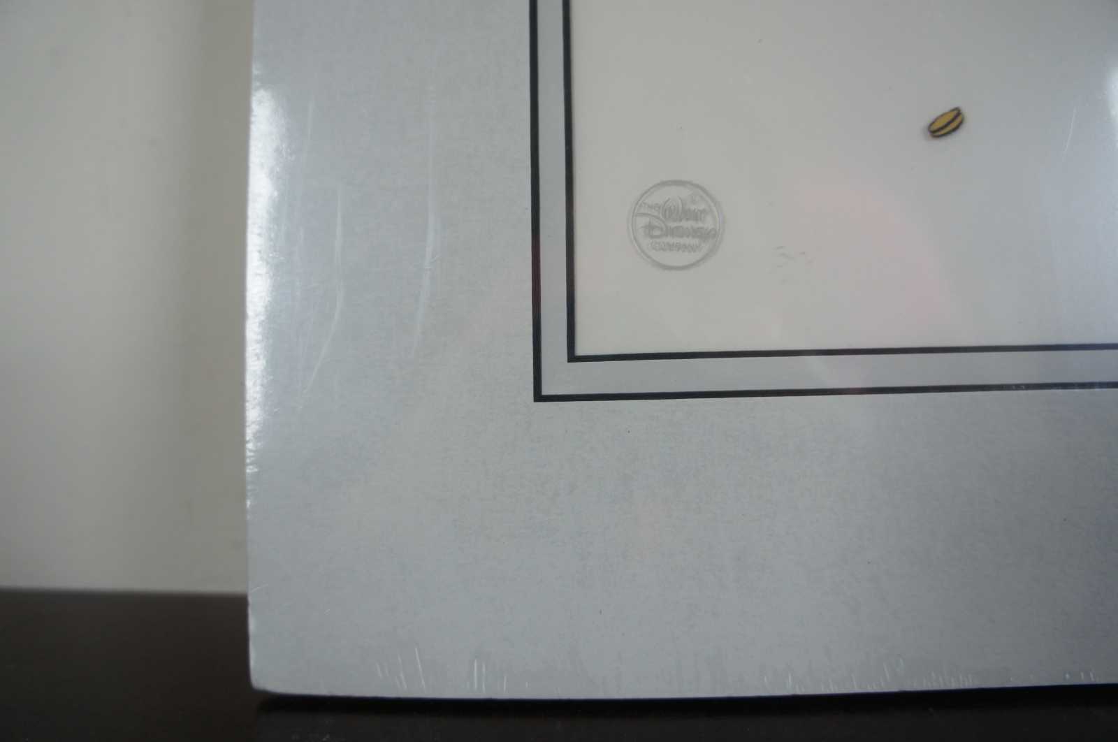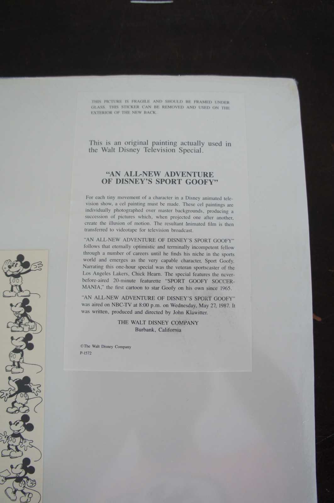 Walt Disney 1987 original animation cel “Sport Goofy Soccer Mania” from the television special “An All-New Adventure of Disney’s Sport Goofy” featuring Scrooge McDuck of Ducktales fame holding a pink handkerchief.