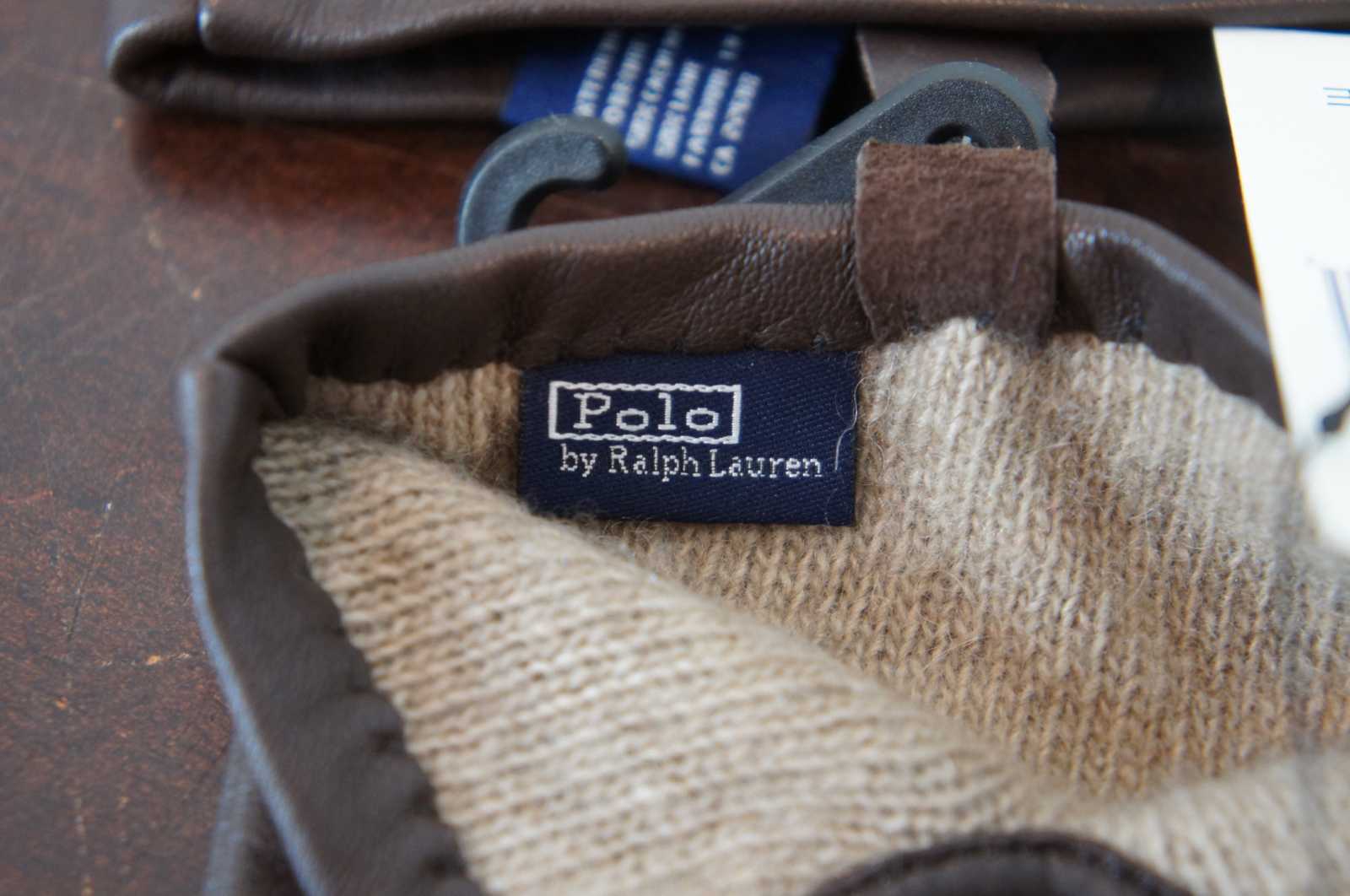 Polo Ralph Lauren men’s brown leather gloves with cashmere knit lining Napa NWT