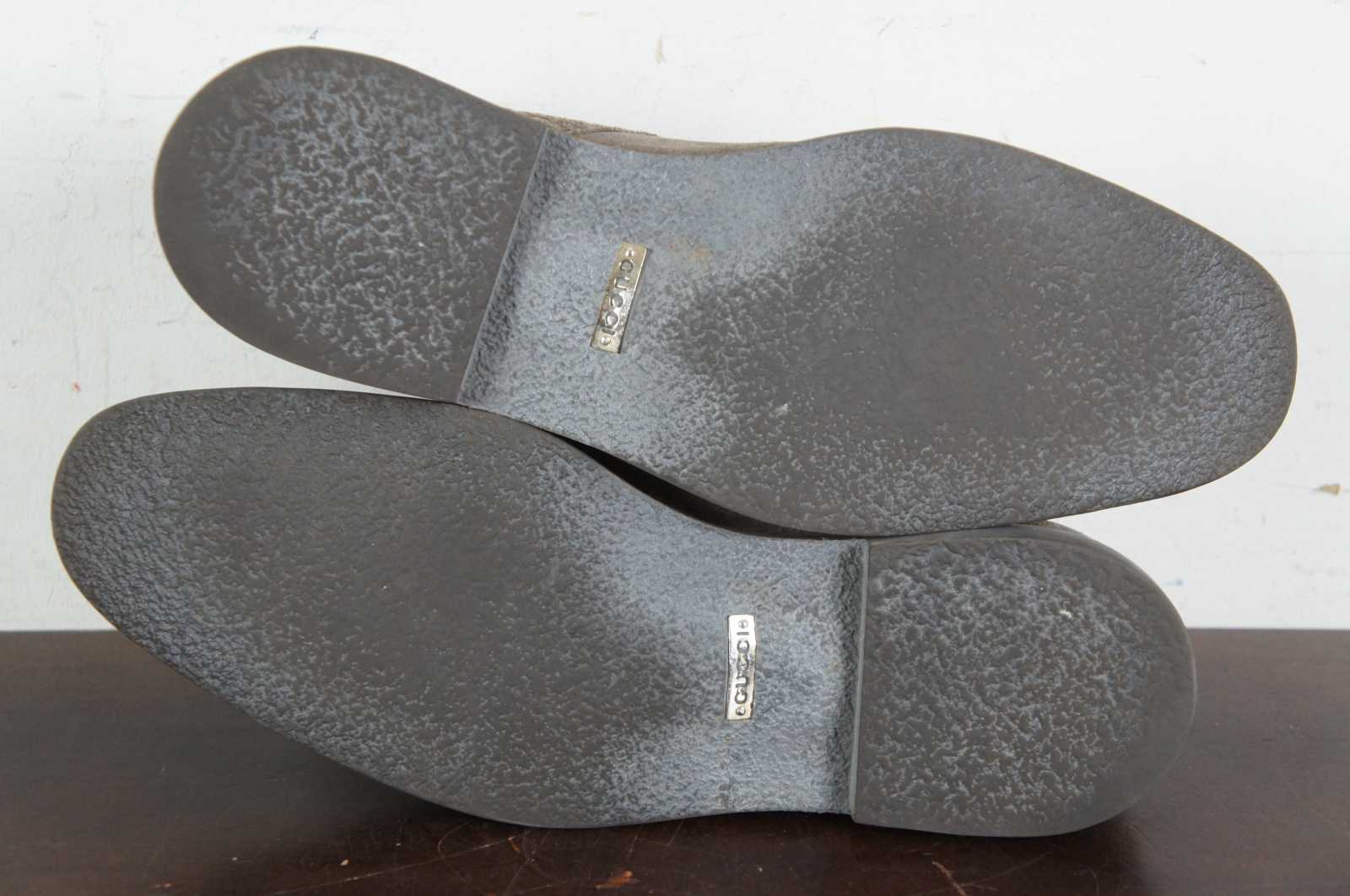 Gucci men’s lace up ankle boot 147548 in Antiqua Suede monogrammed leather, color Smoke (beige).