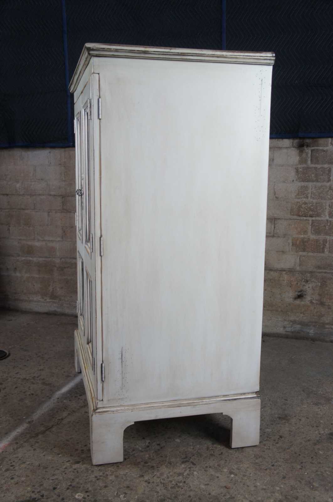 Reclaimed pine chic painted linen press. Opens to to adjustable shelves. Great for storing clothing or use as a media cabinet.