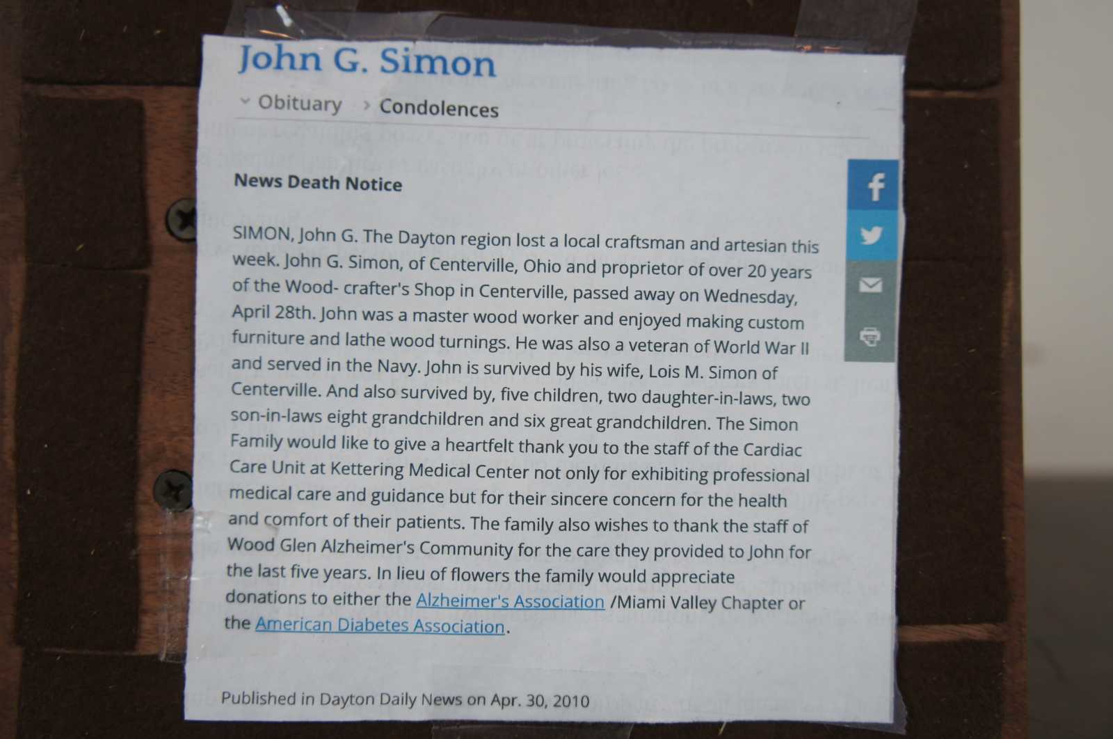 Antique locking coin bank with post office door front fashioned out of black walnut by John G Simon of Centerville, OH.