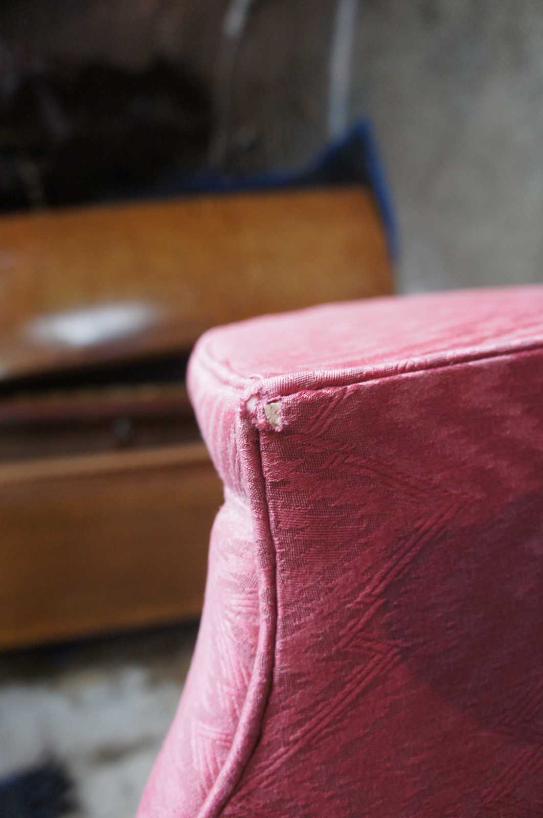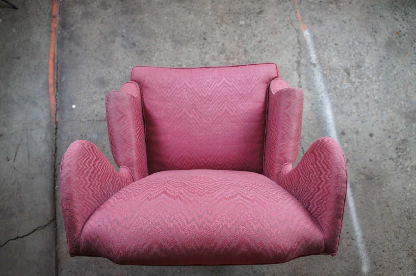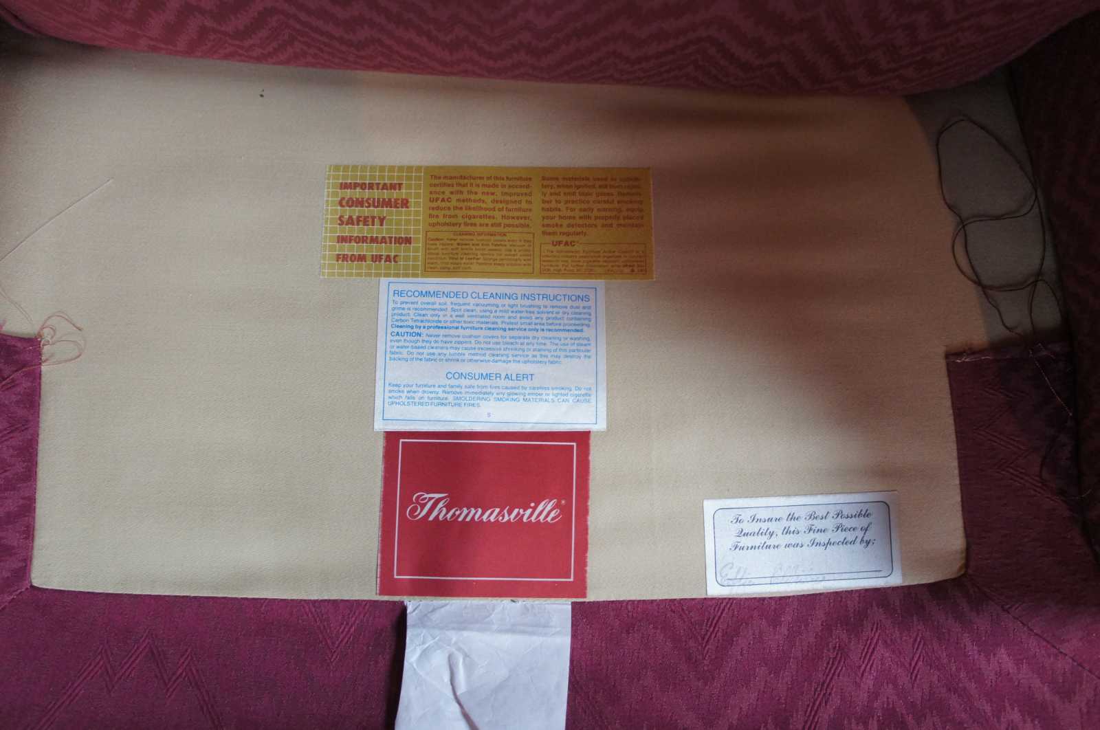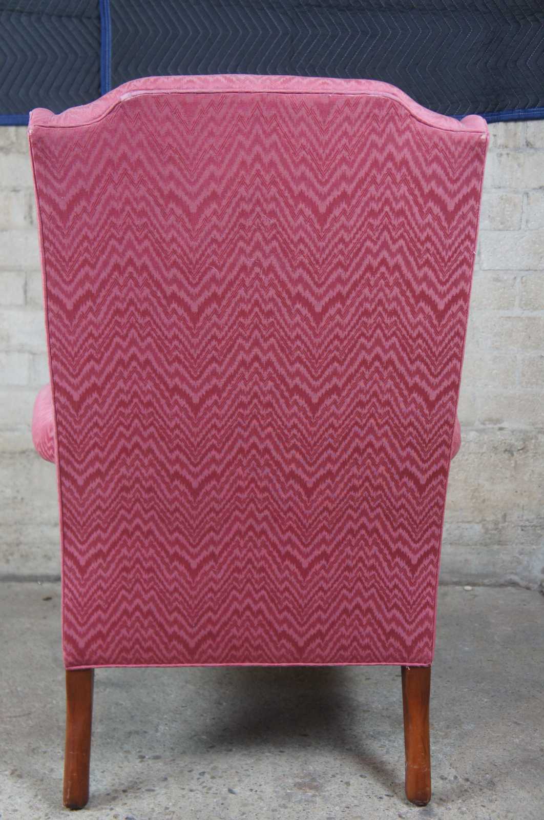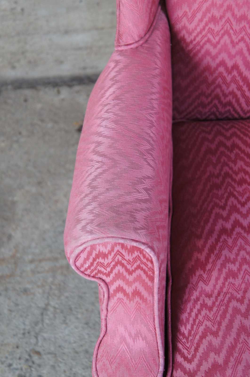 Circa 1980s Thomasville wingback chairs. Queen Anne style with a pink upholstery over carbriole legs.