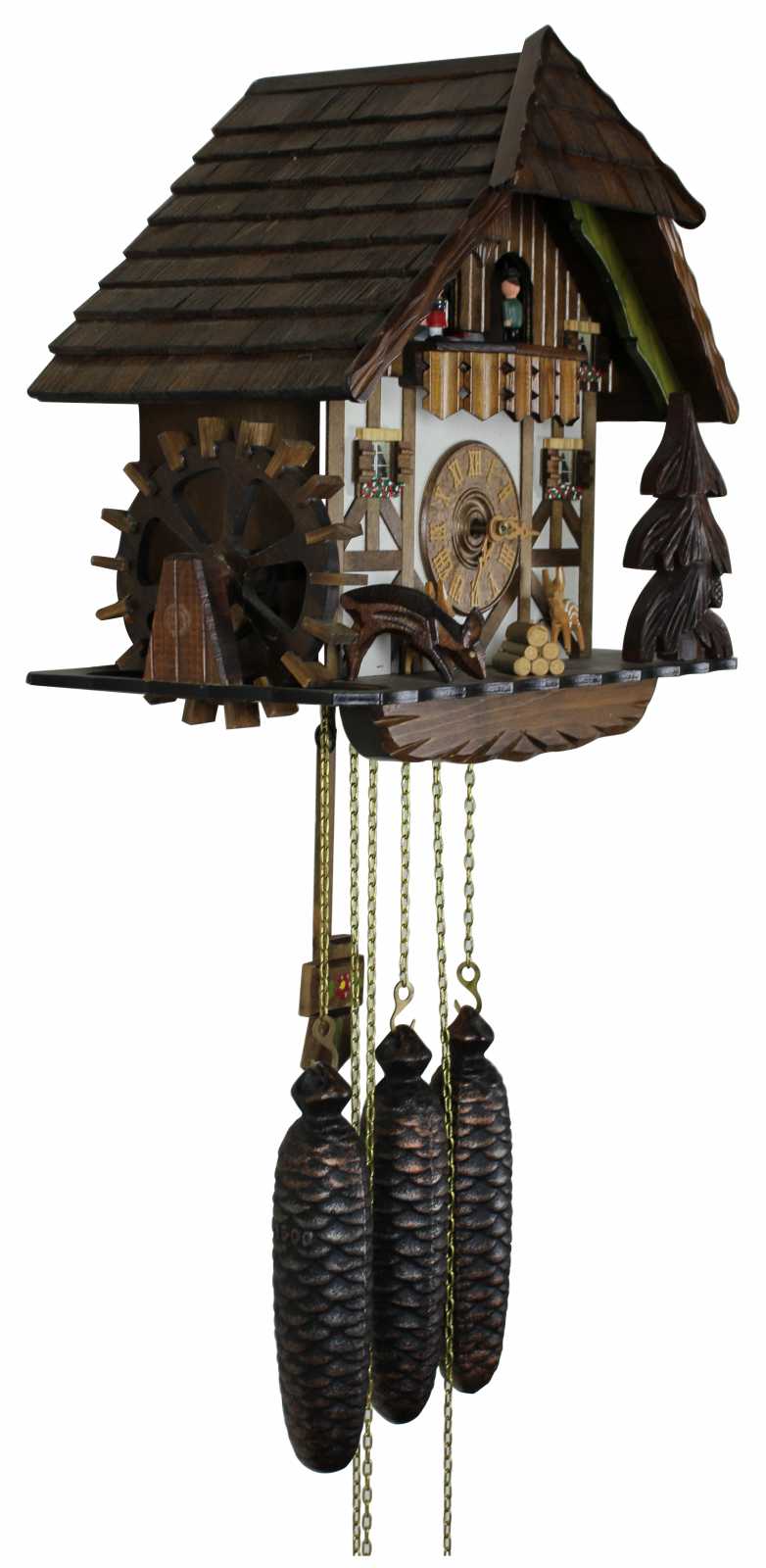 Vintage Black Forest Wall Clock. Works stamped Regula, made in germany. Featurees a cottage with waterwheel and animals outside. Swiss Musical Movement with Edelweiss Der Frohliche wanderer.