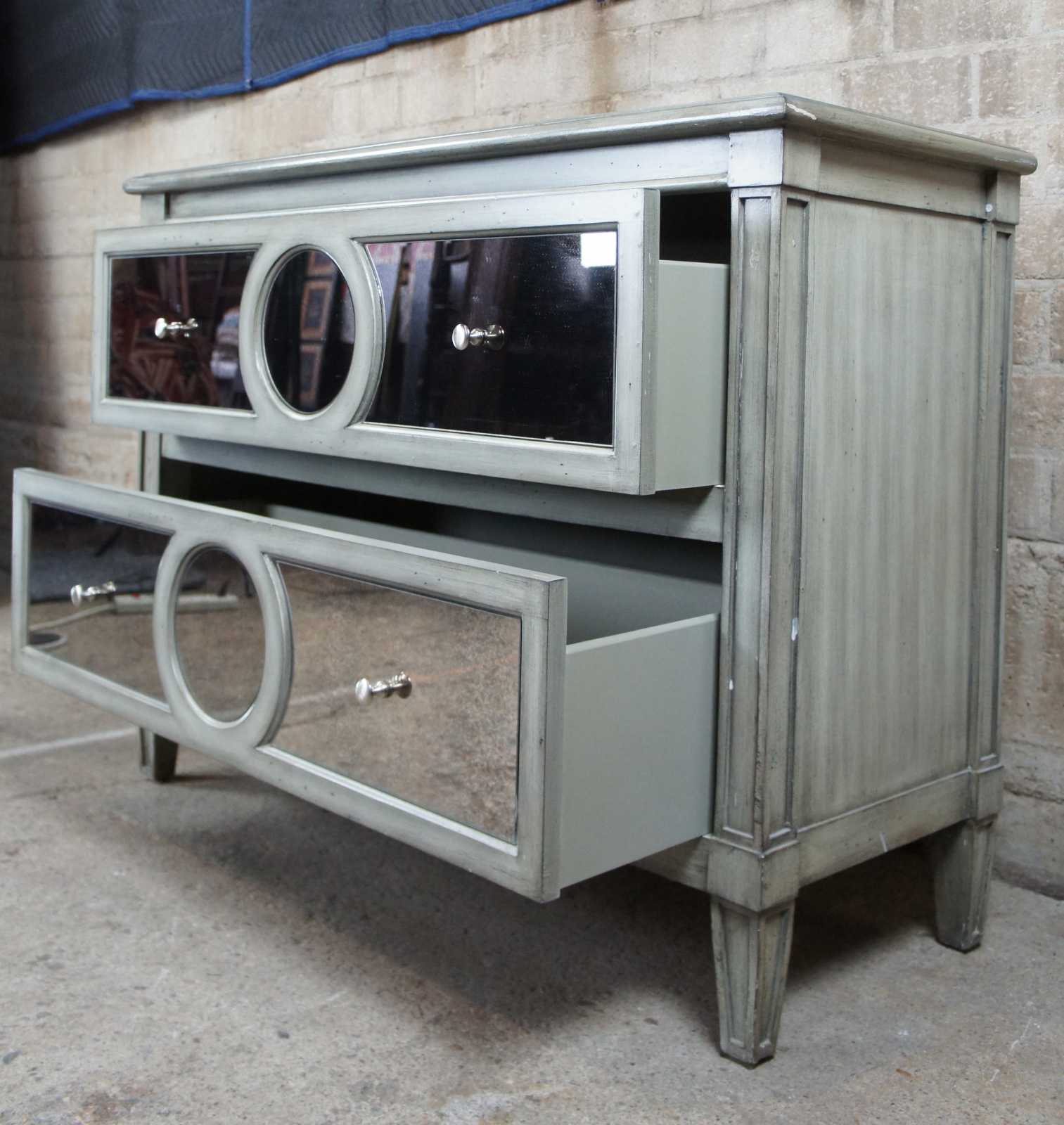 Stein Worlds 2 drawer mirrored front chest. Features french styling paired with a contemporary look.