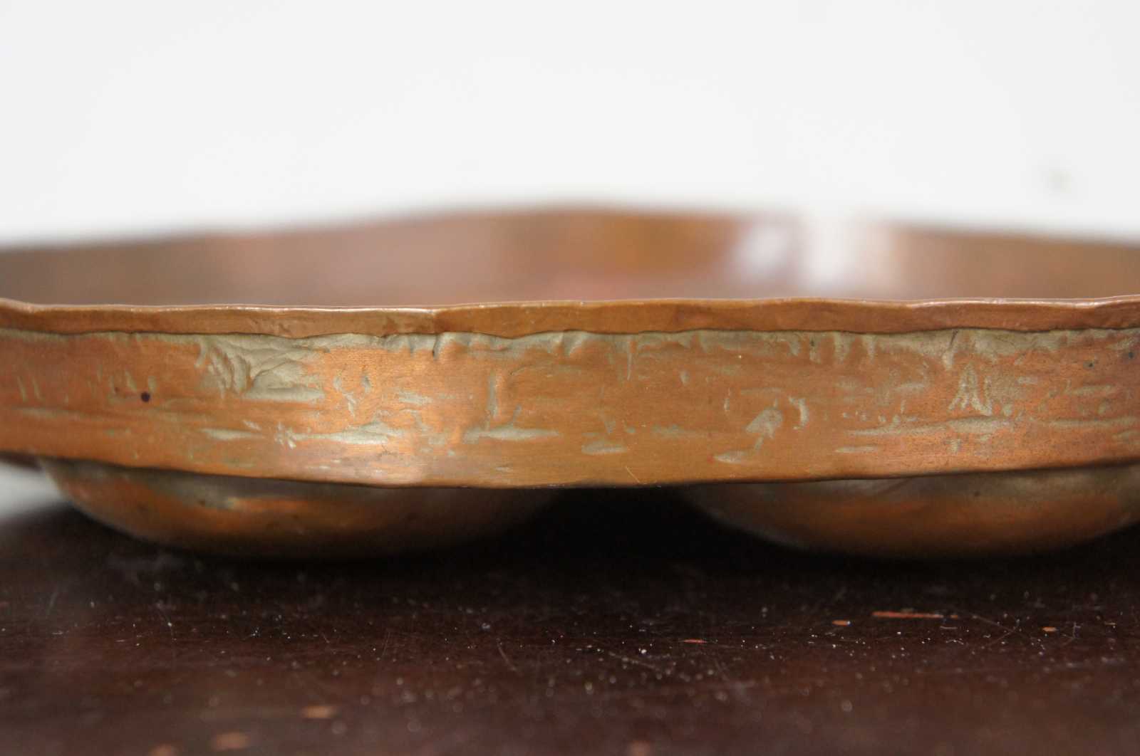 Antique copper egg poaching or dumpling pan / pot with brass handles.
