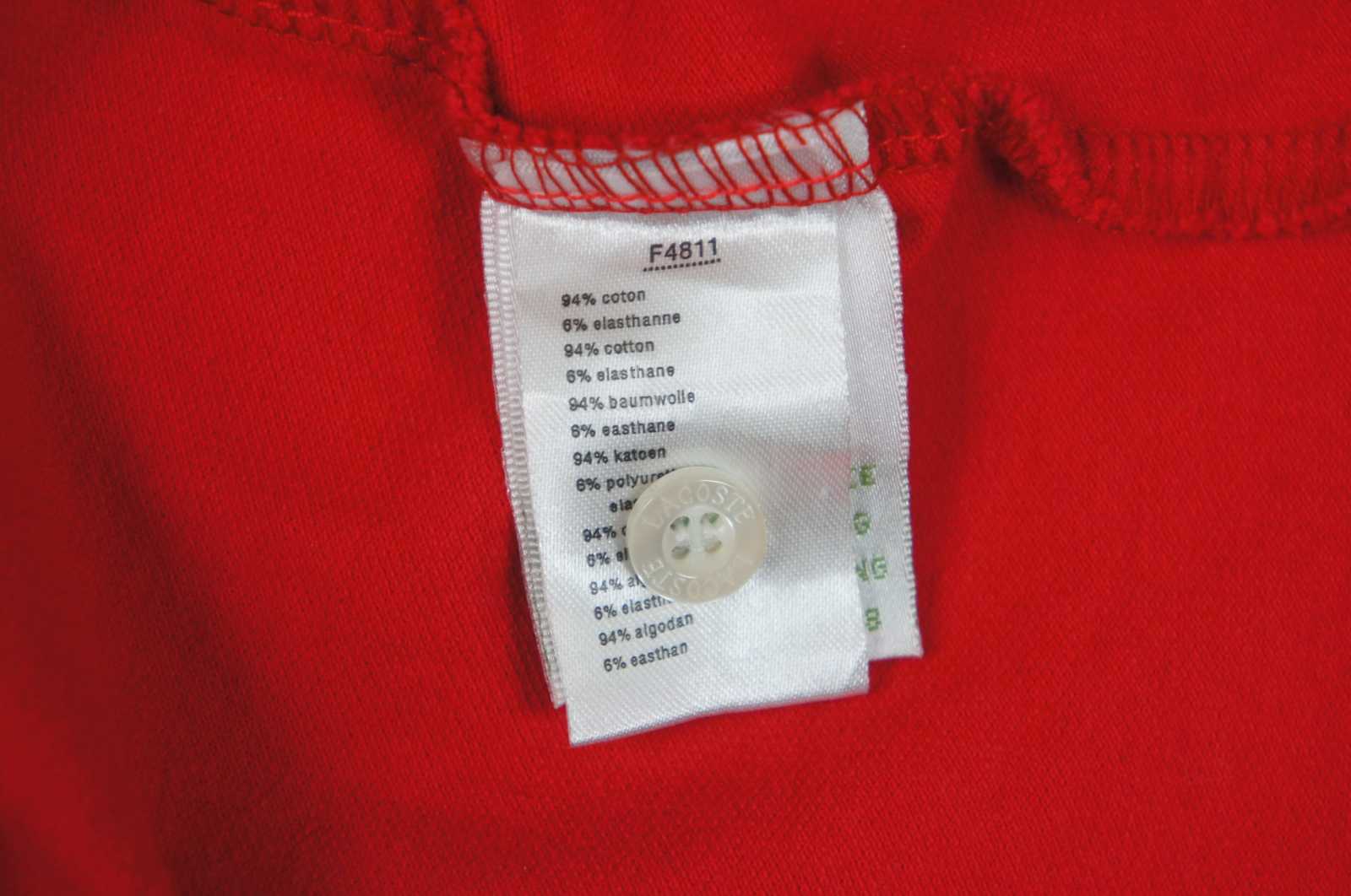 Lacoste mens short sleeve golf shirt in tomato red with embroidered alligator logo.