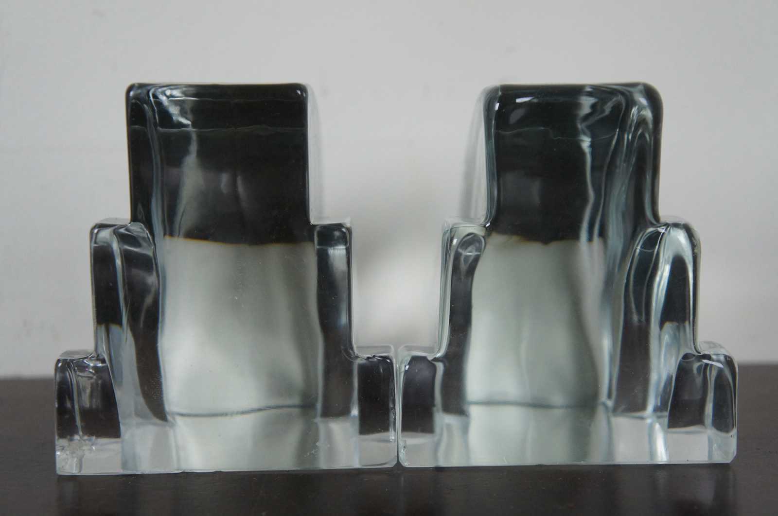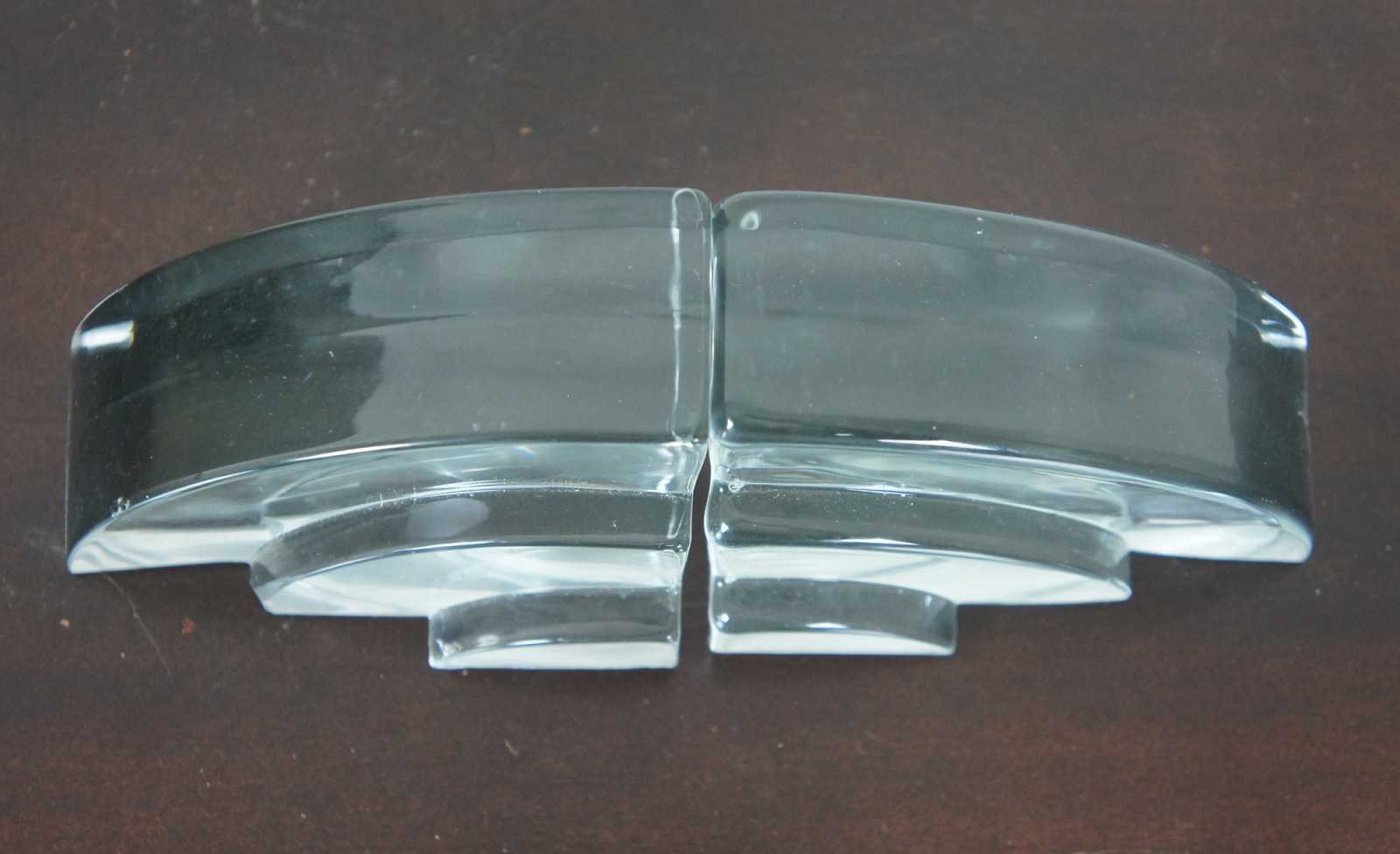 Vintage art deco inspired style pressed glass tiered geometric bookends made of layered semicircles.