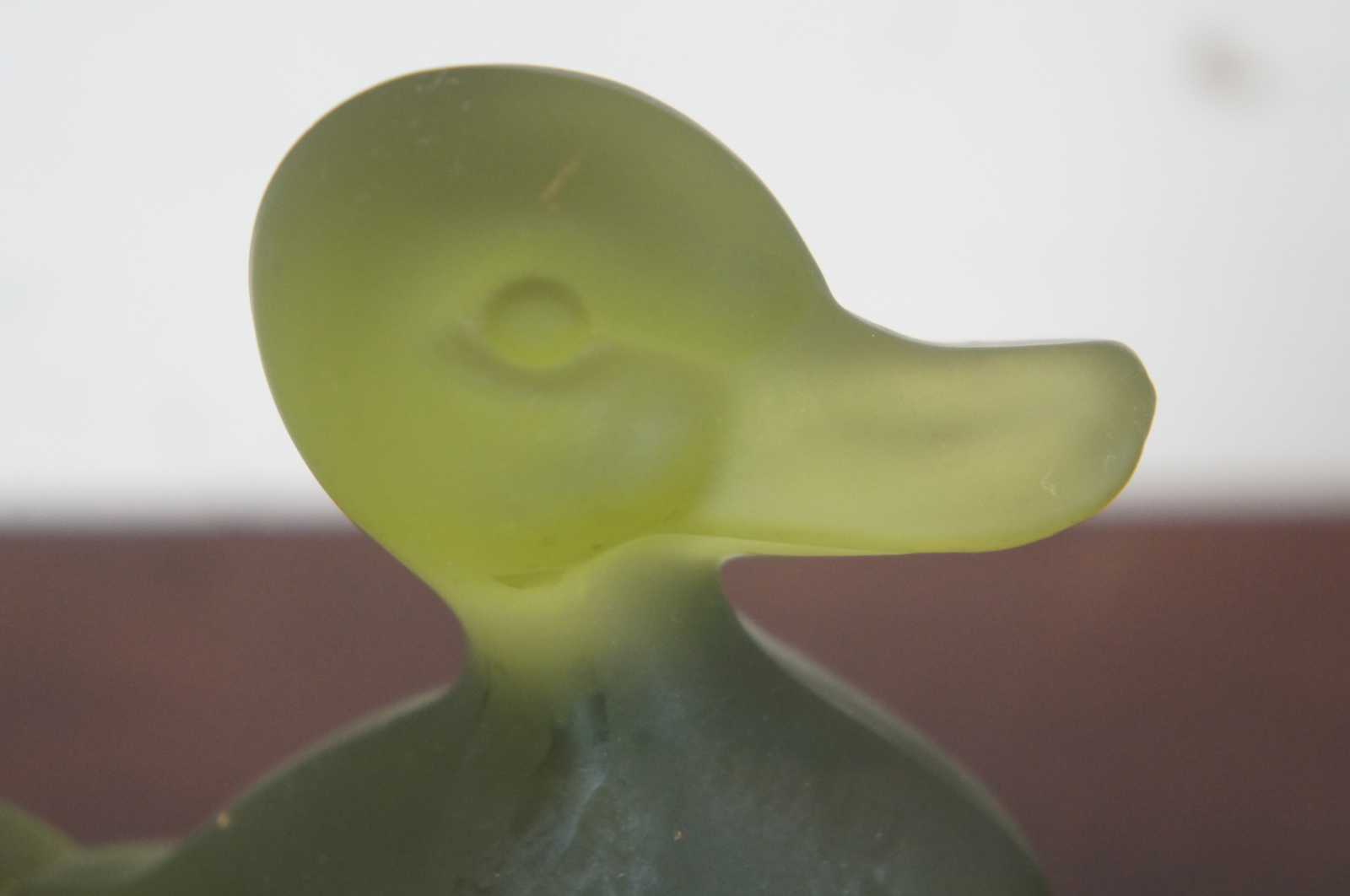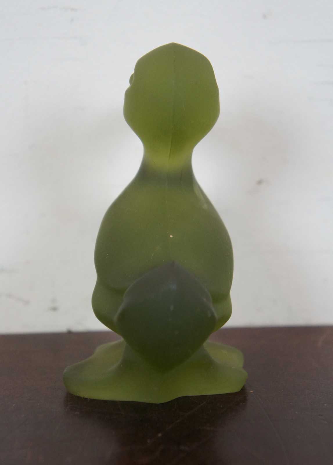 Vintage olive green Fostoria glass duck figurine.