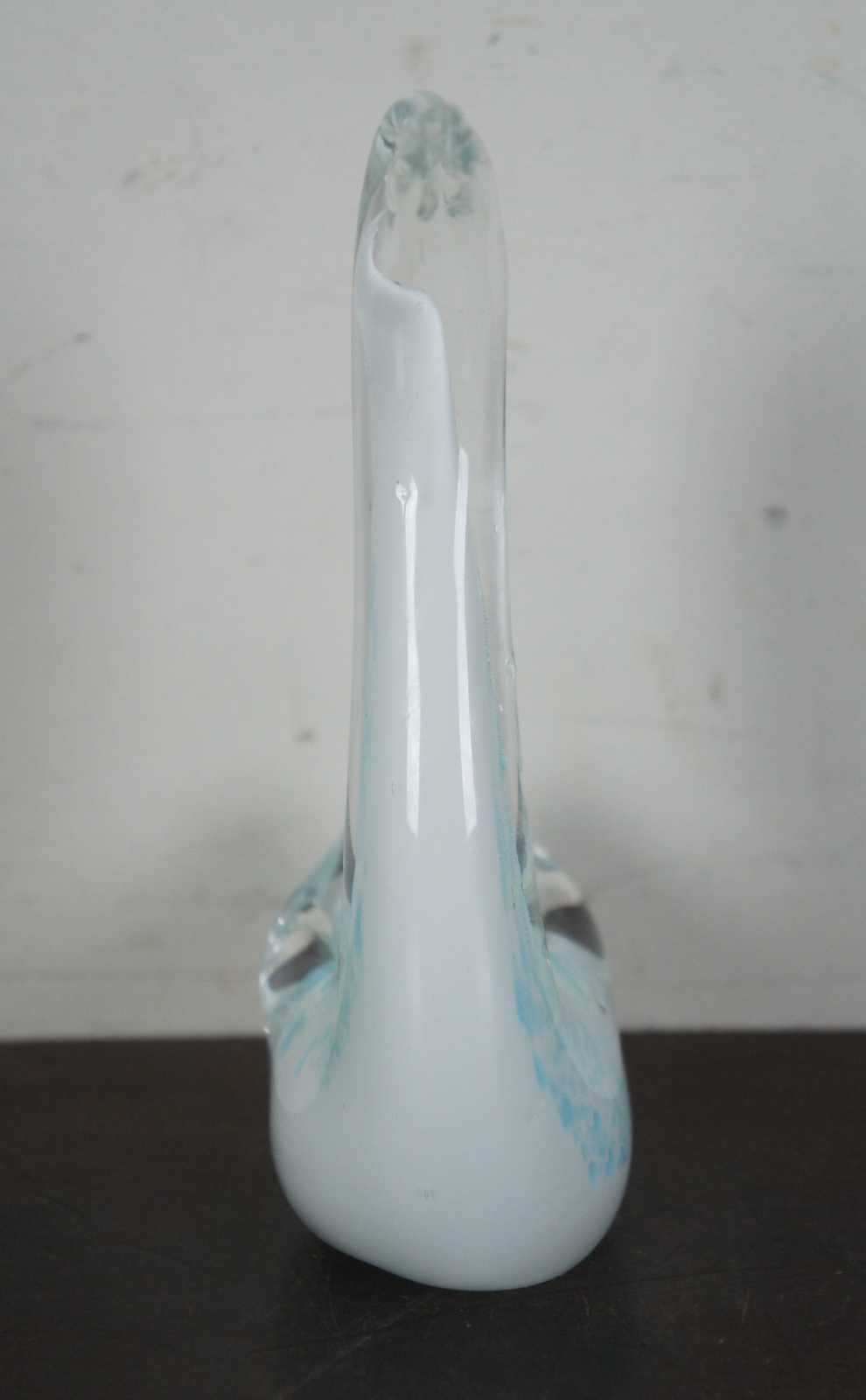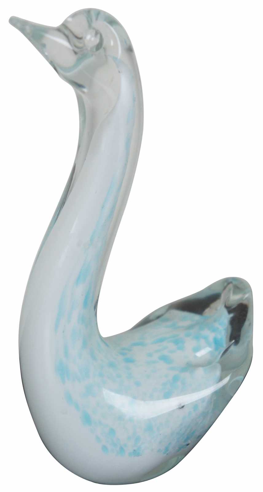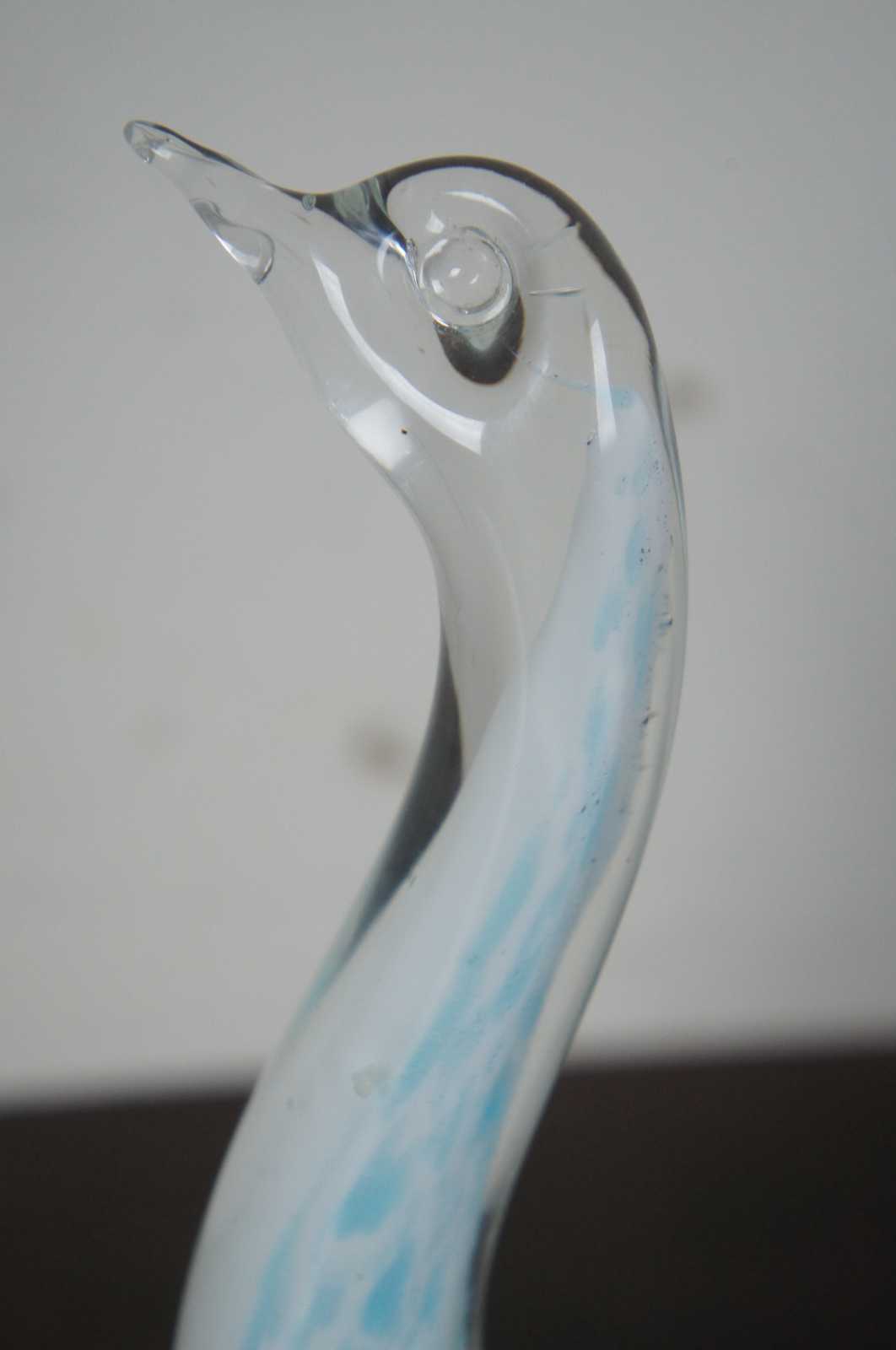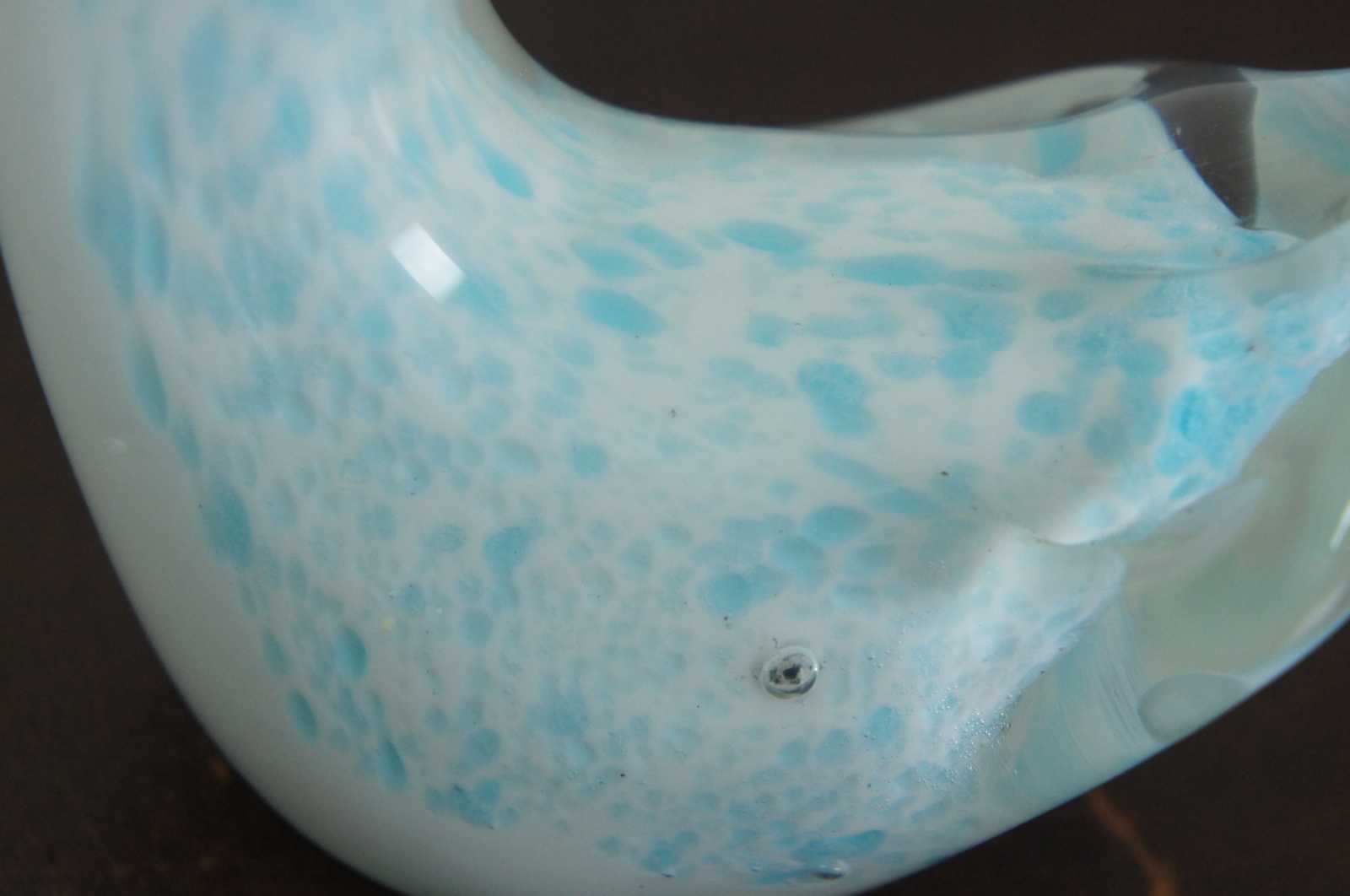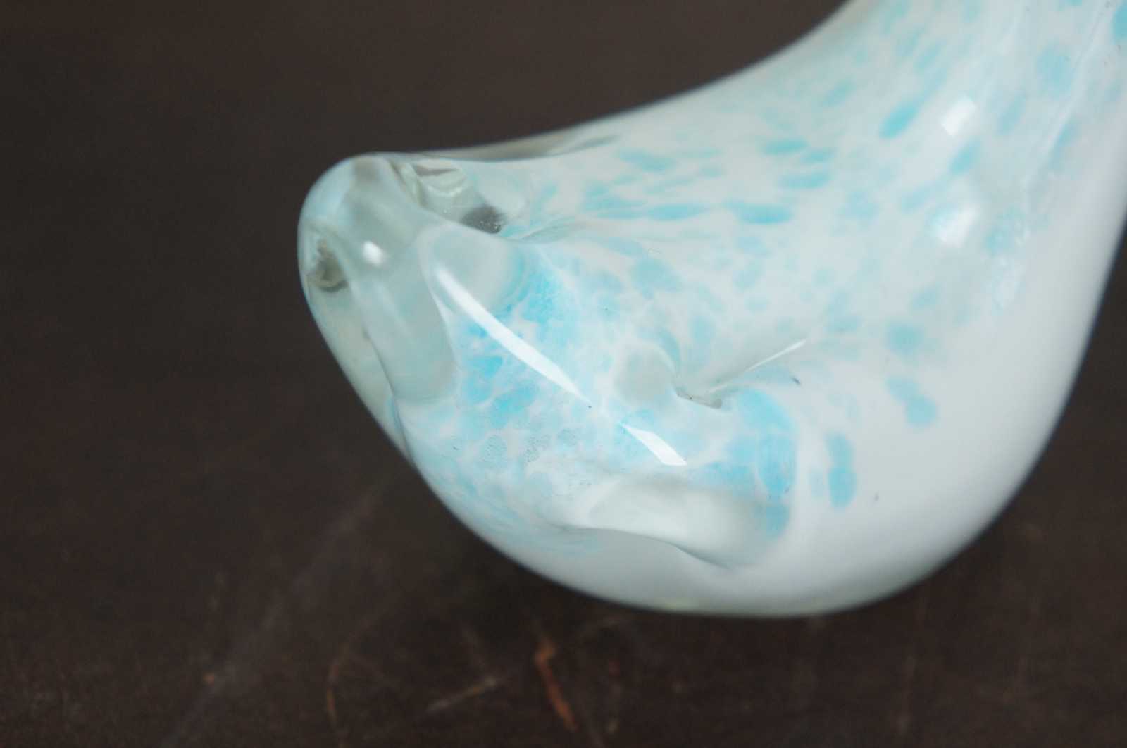 Vintage blue and white studio art glass goose or swan figurine.