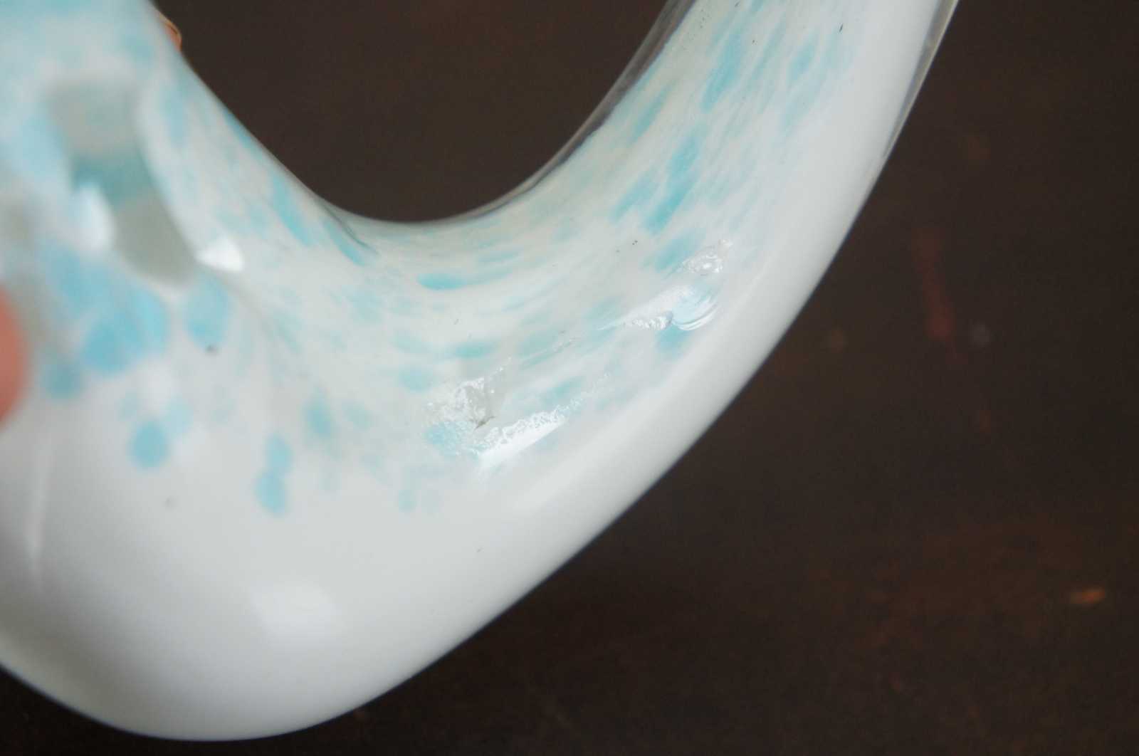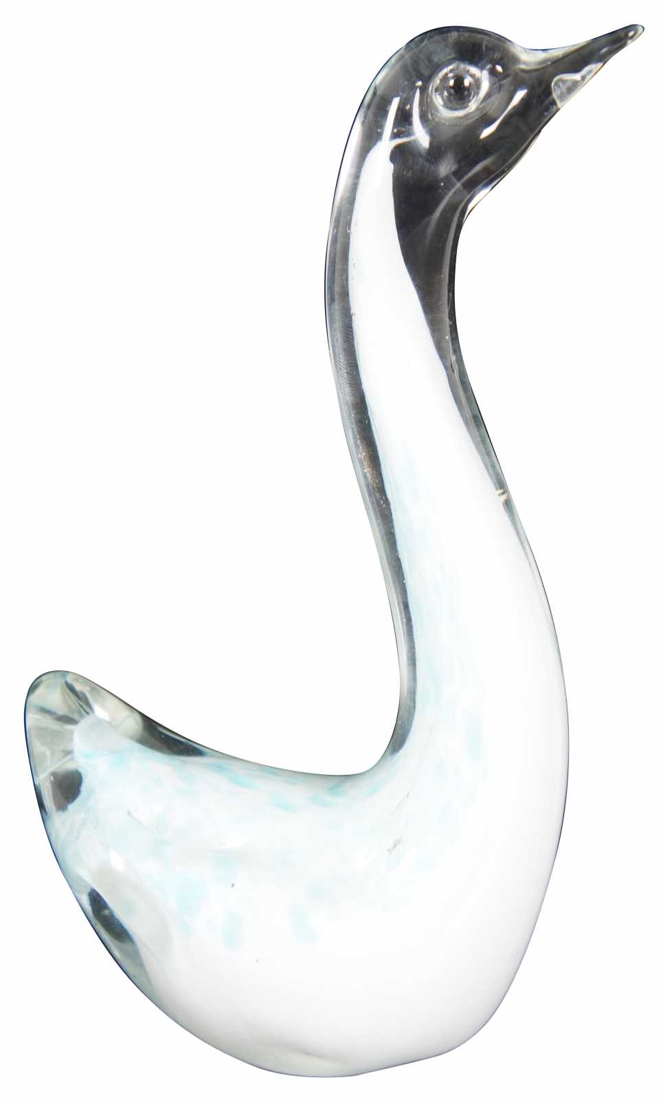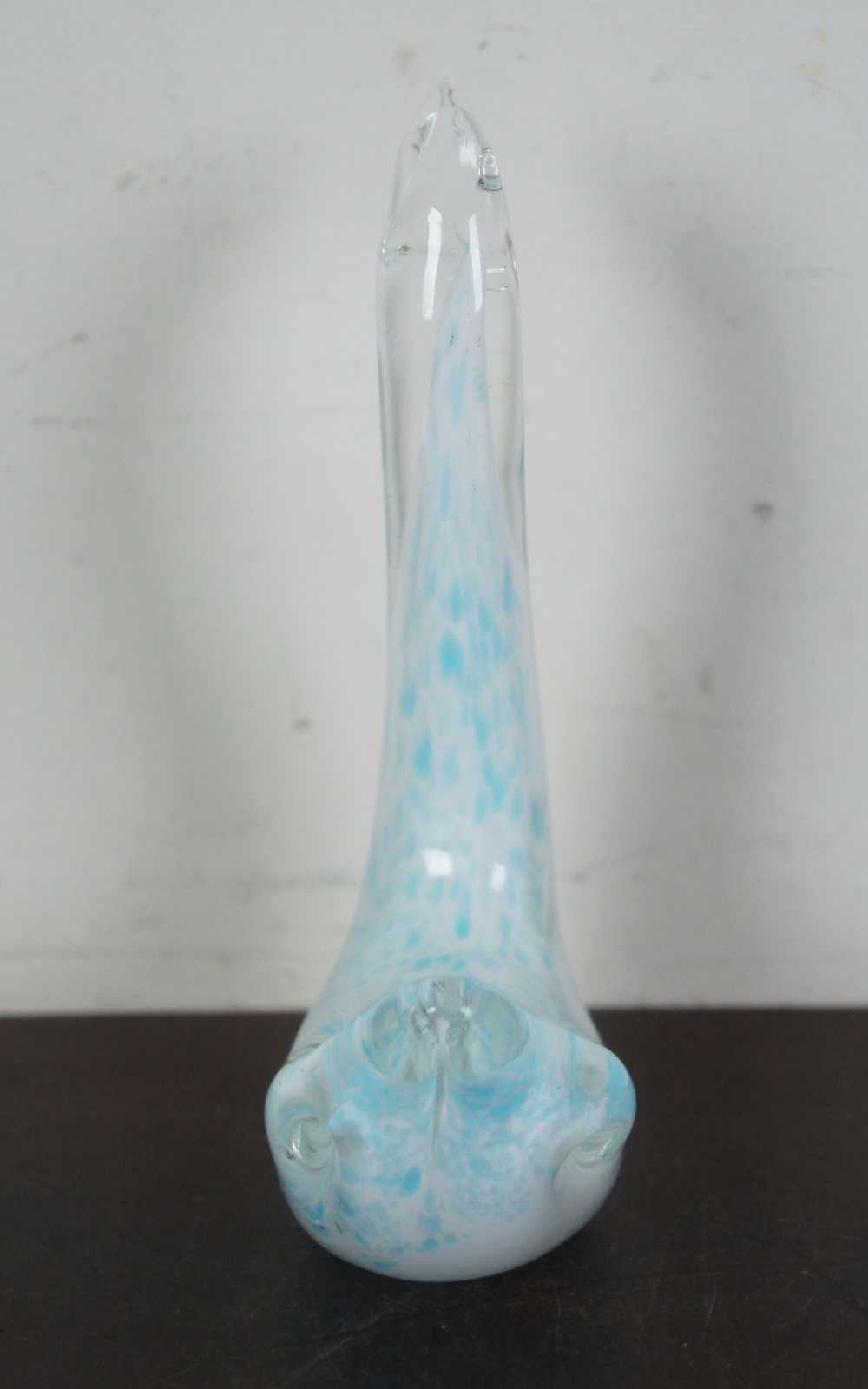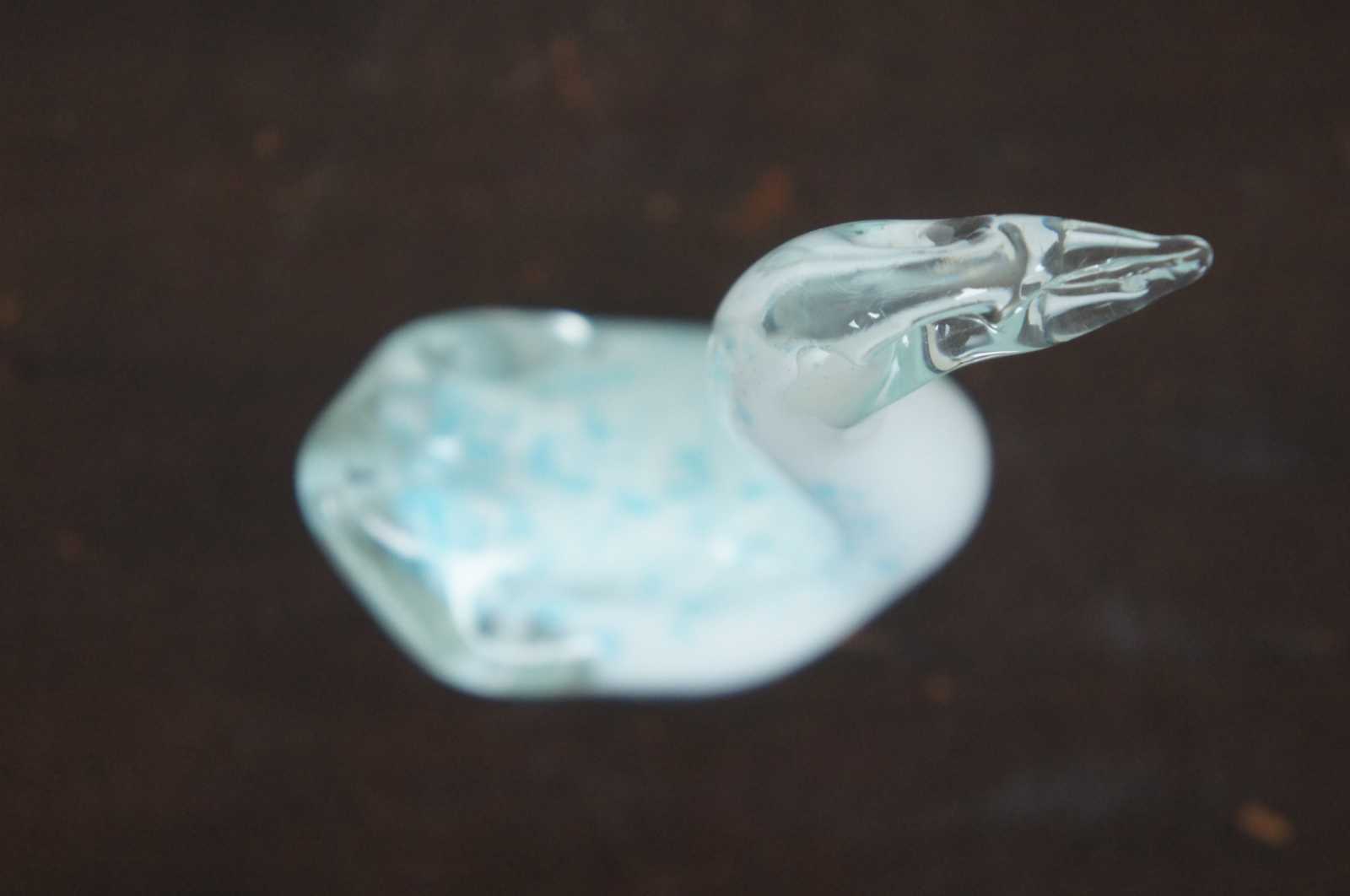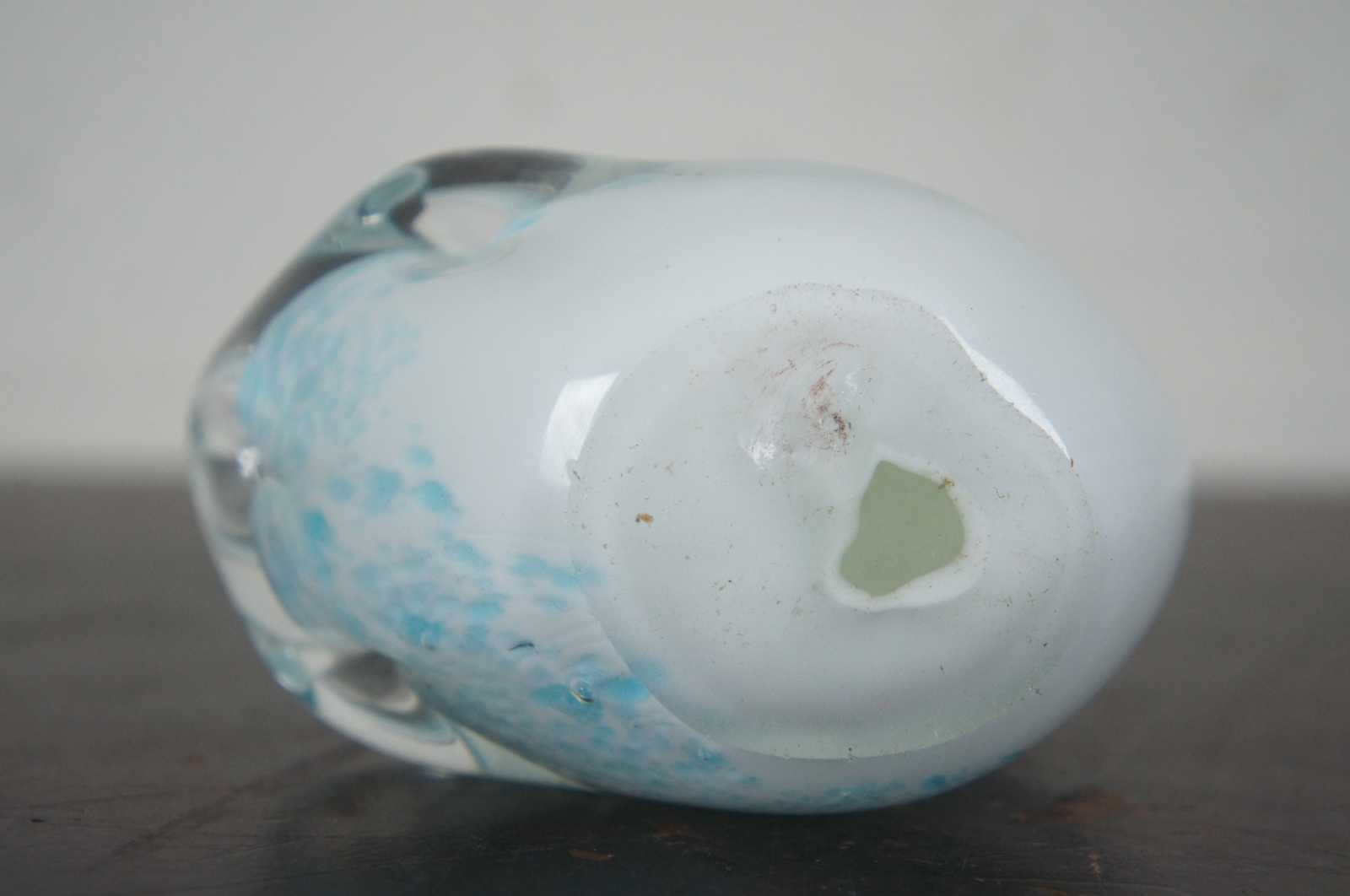 Vintage blue and white studio art glass goose or swan figurine.