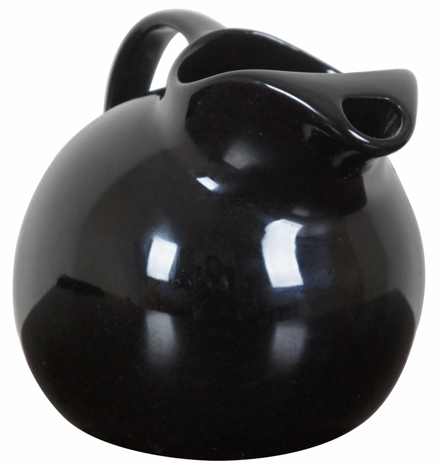 Vintage Hall Pottery tilted ball shaped water pitcher with ice lip on the spout.