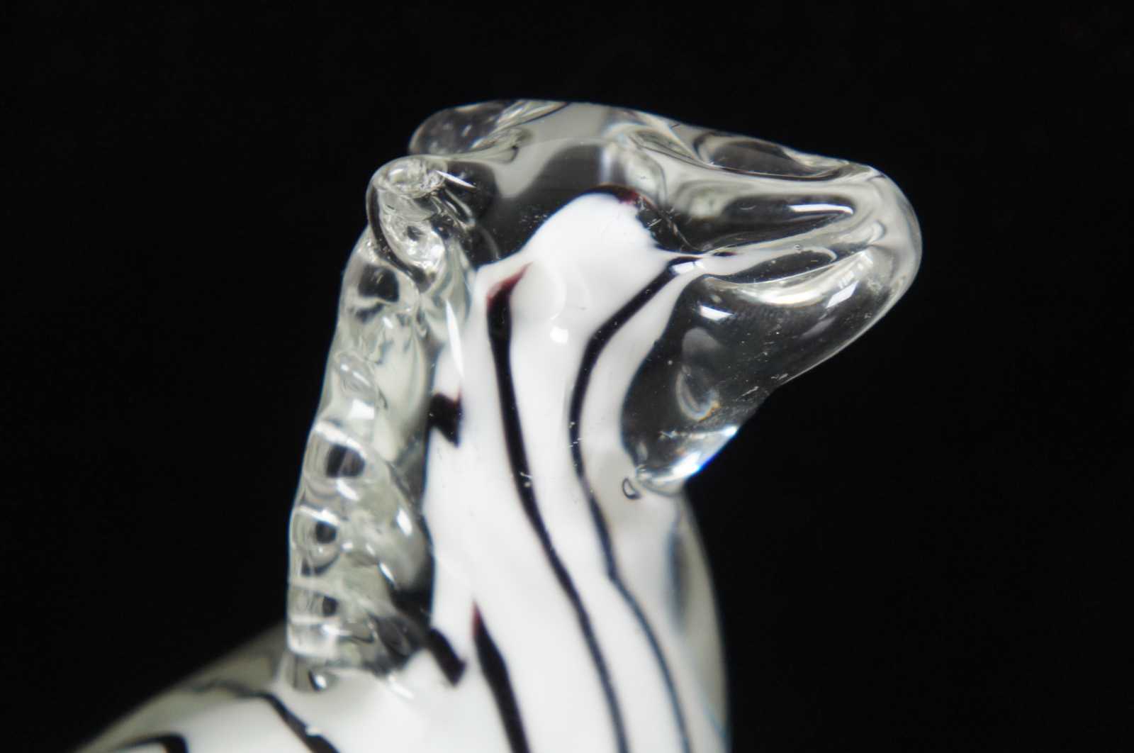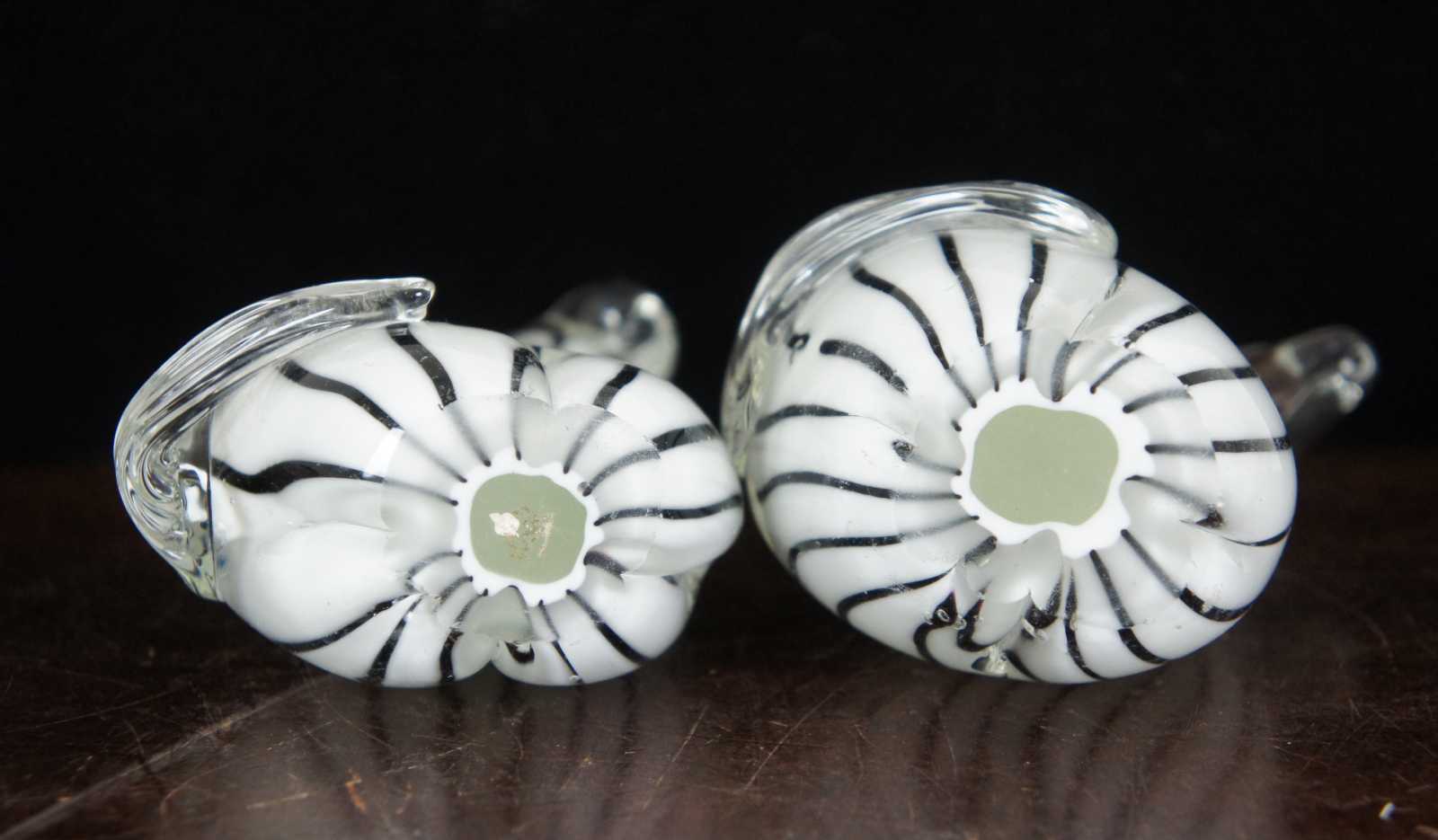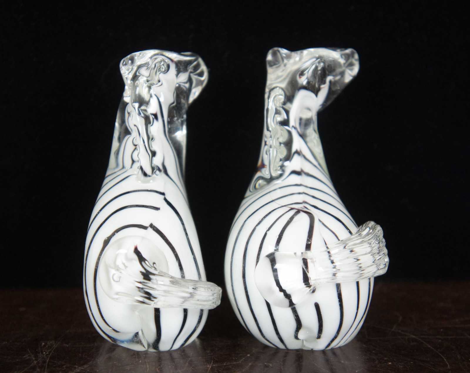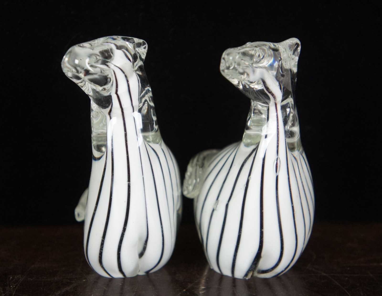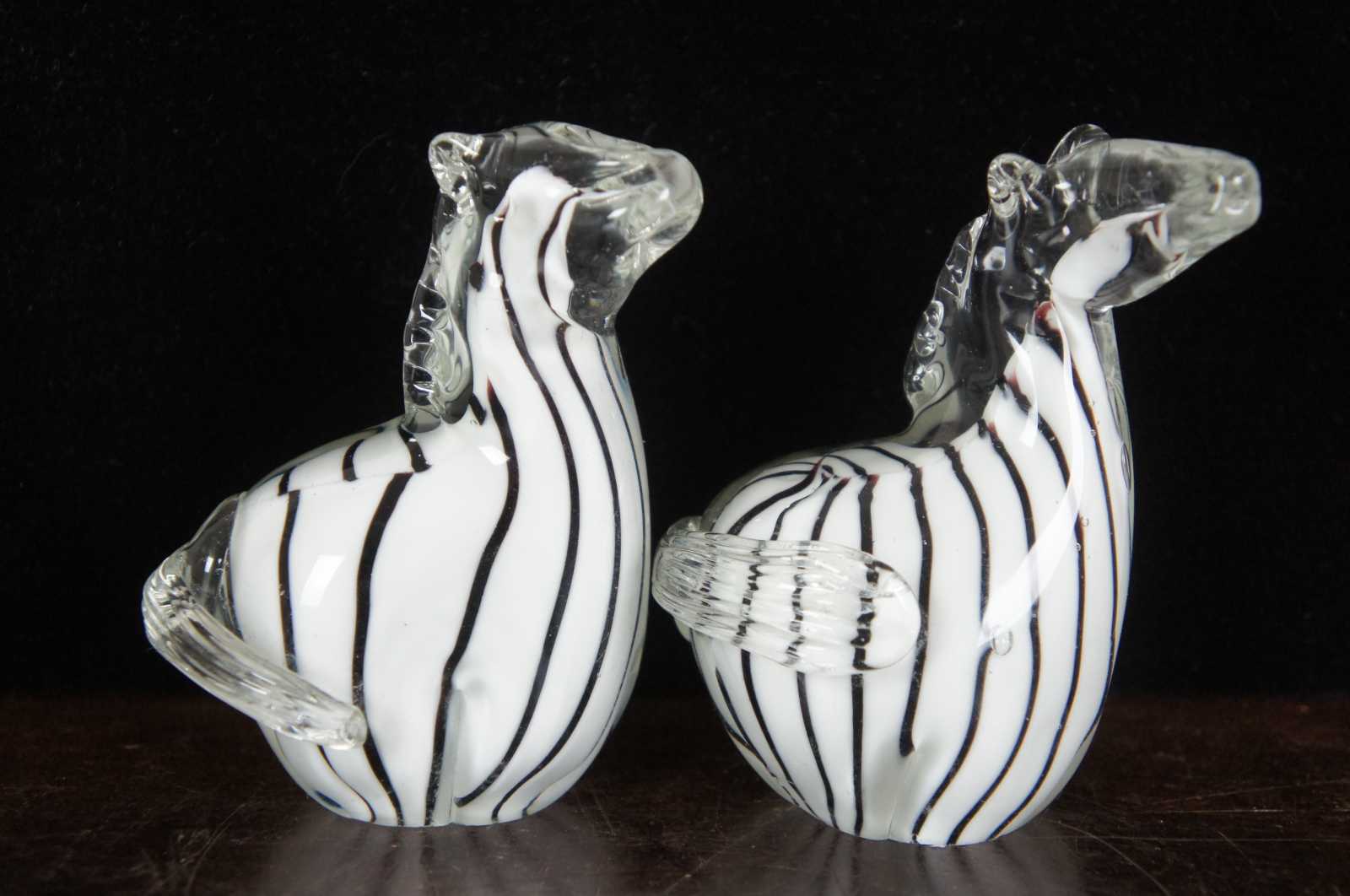 Pair of vintage Murano studio art glass black and white striped zebra figurines.