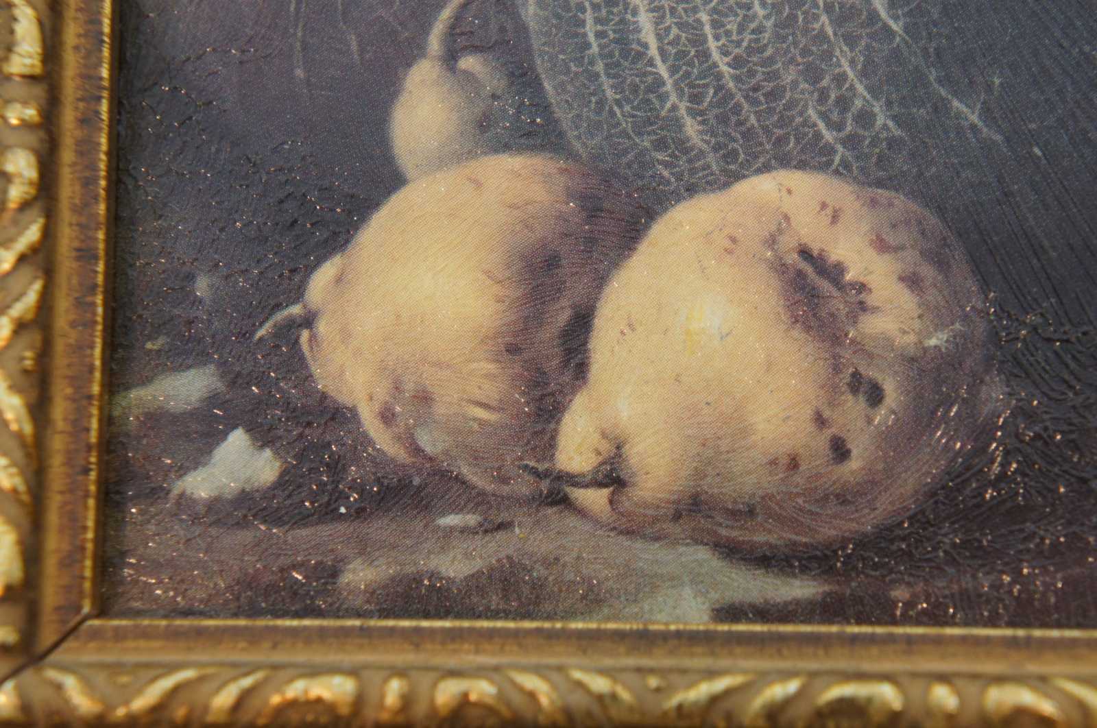 Small vintage giclee print of “Still Life with Melons, Pears and Prunes” by Luis Melendez. Described as "the leading Spanish still life painter of the 18th century", Luis Meléndez was of a family of prominent painters. However, he suffered the end of a promising career because his father, Francisco, got 'crosswise' with the art Academy in Madrid, which he had help found in 1744. As a result of both Francisco and Luis ridiculing the Academy Director, Luis failed to get any court appointment that would bring him income because he along with his father was expelled from the Academy. As a result, he died in poverty. However, during this period, which was the last 20 years of his life, he painted miniatures and about 100 still life, many of them intended to be hung as pairs. Some of them had landscape backgrounds. However, in those days still lifes were regarded as purely a decorative genre, and, although the Academy condoned still-life painting, it did not carry the stature of more traditional painting. Luis Melendez was born in Naples in 1716, when it was under Spanish control, and shortly after, he moved to Spain. He studied at the Academy, and the self portrait he did at the Academy in 1746 was judged very skillful.