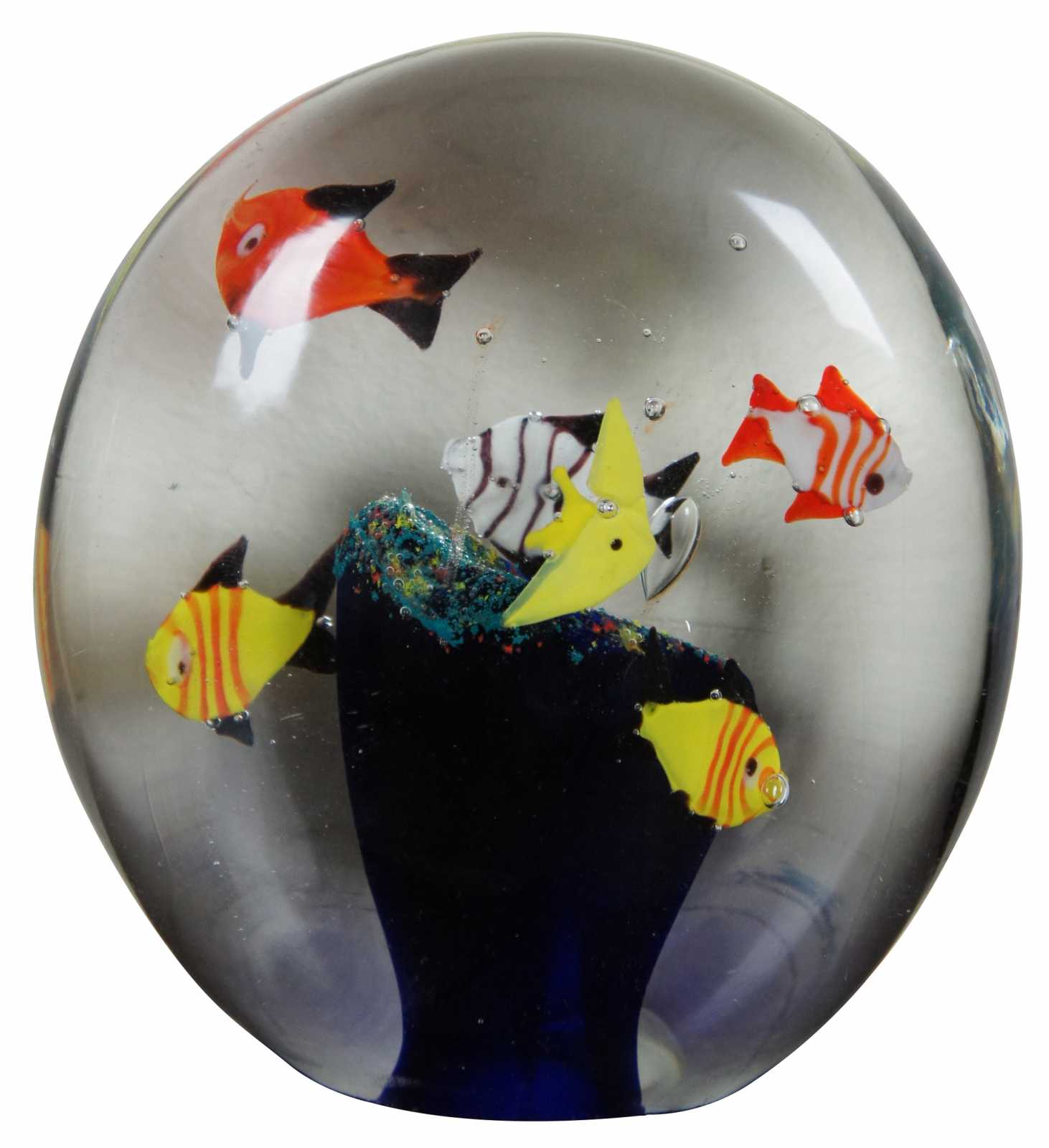 Set of two vintage Murano studio art glass fish bowl style paperweights.