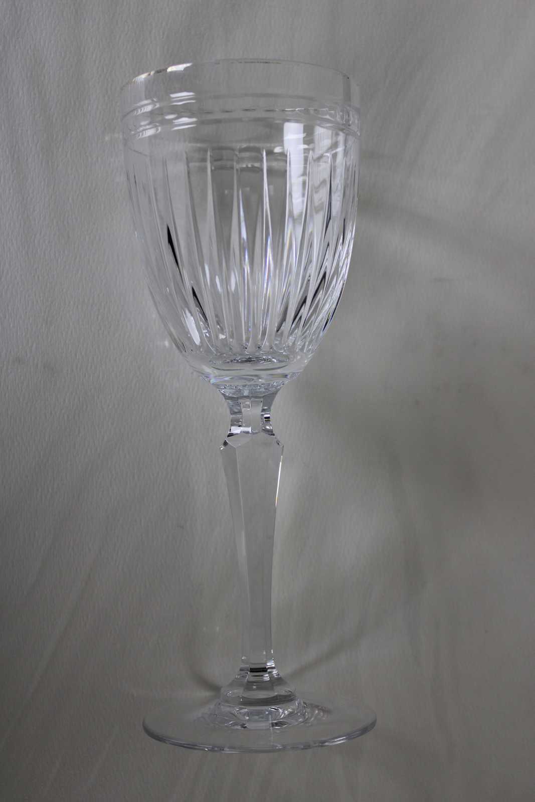 The Hanover pattern features a regular size cut stem with a smooth base (many Waterford pattern have a cut/etched design on the base) & a vertical cut paneled design with banding on the goblet portion.