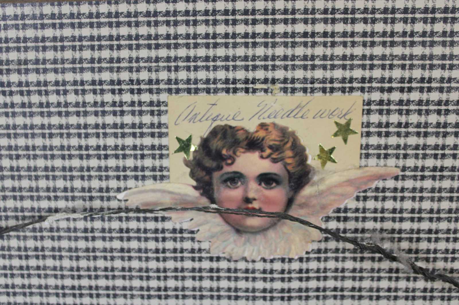 Victorian era framed needlepoint tapestry. Features a landscape with two doves at the center amongst an array of flowres.