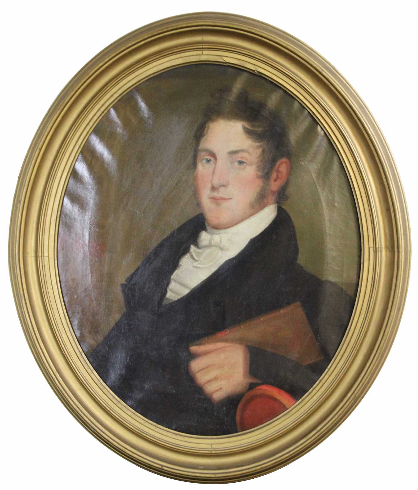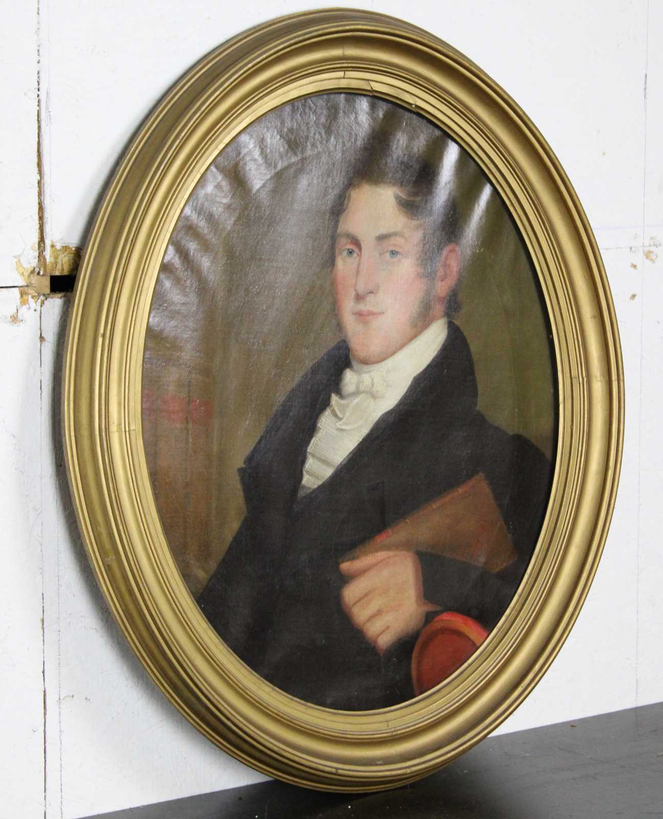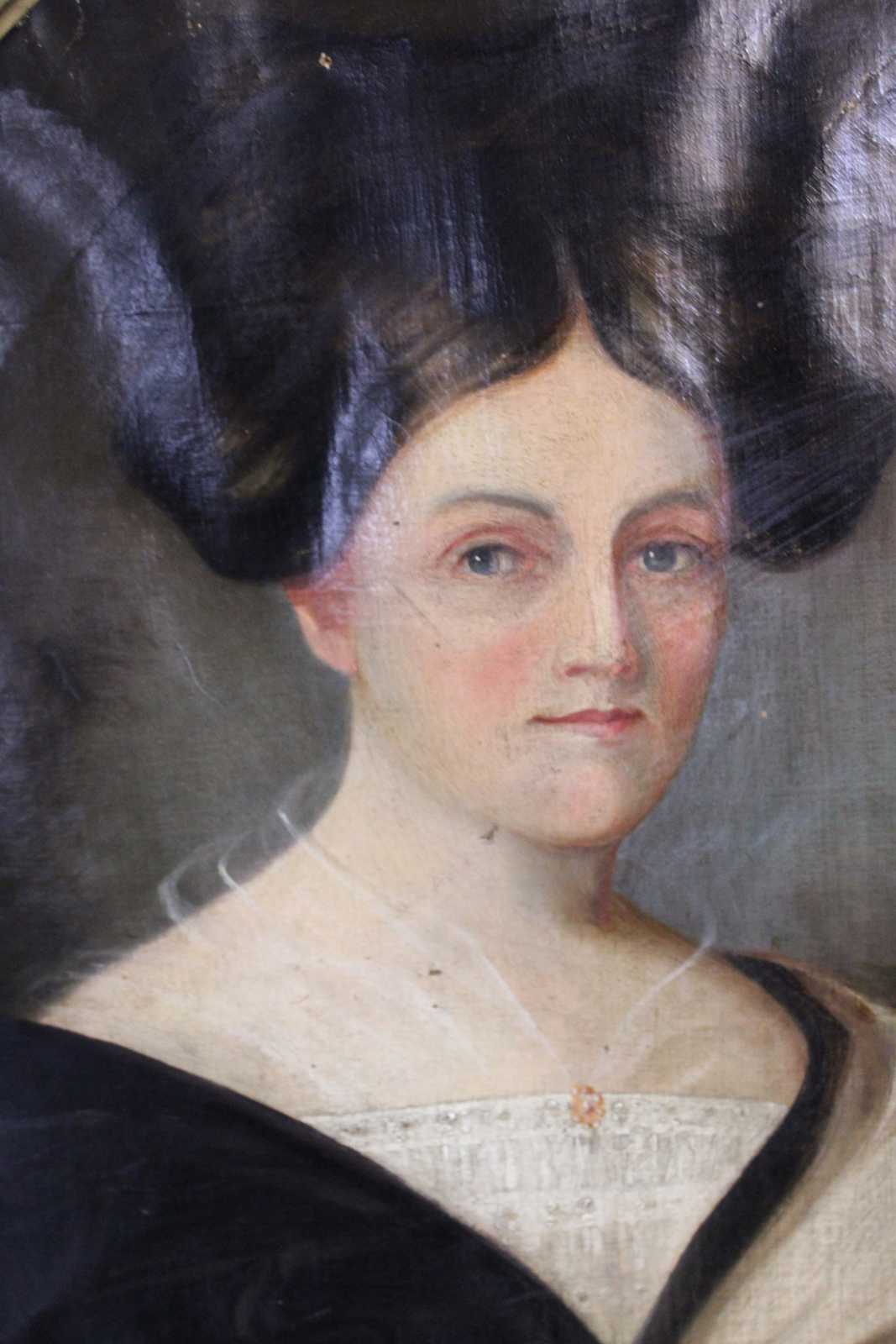 Antique condition, wear and distressing commensurate with age, some waving / creasing / crazing / indents and foxing to canvases, pinhole in woman's hairline, chipping / paint loss to frames, see pictures.