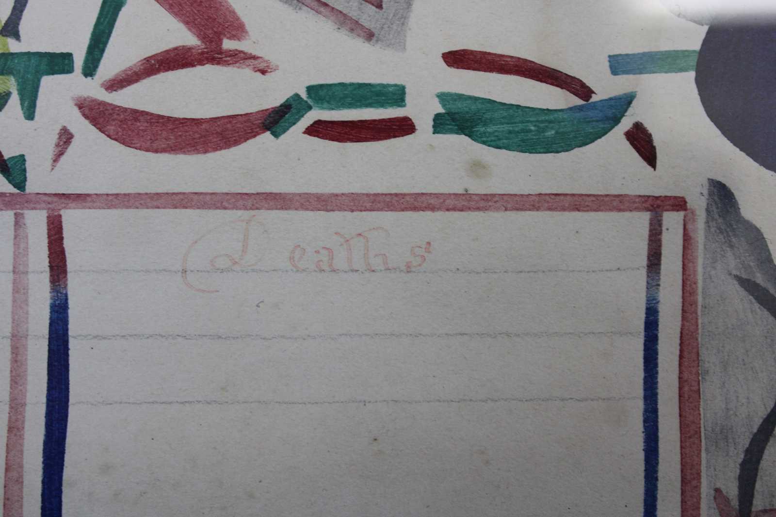 Fraktur drawings were executed in ink and/or watercolors and are found in a wide variety of forms: the Vorschriften (writing samples), the Taufscheine (birth and baptismal certificates), marriage and house blessings, book plates, and floral and figurative scenes. The earlier Fraktur were executed entirely by hand, while printed text became increasingly common in later examples. Common artistic motifs in Fraktur include birds (distelfinks), hearts, and tulips, as well as blackletter (Fraktur) and italic calligraphy.