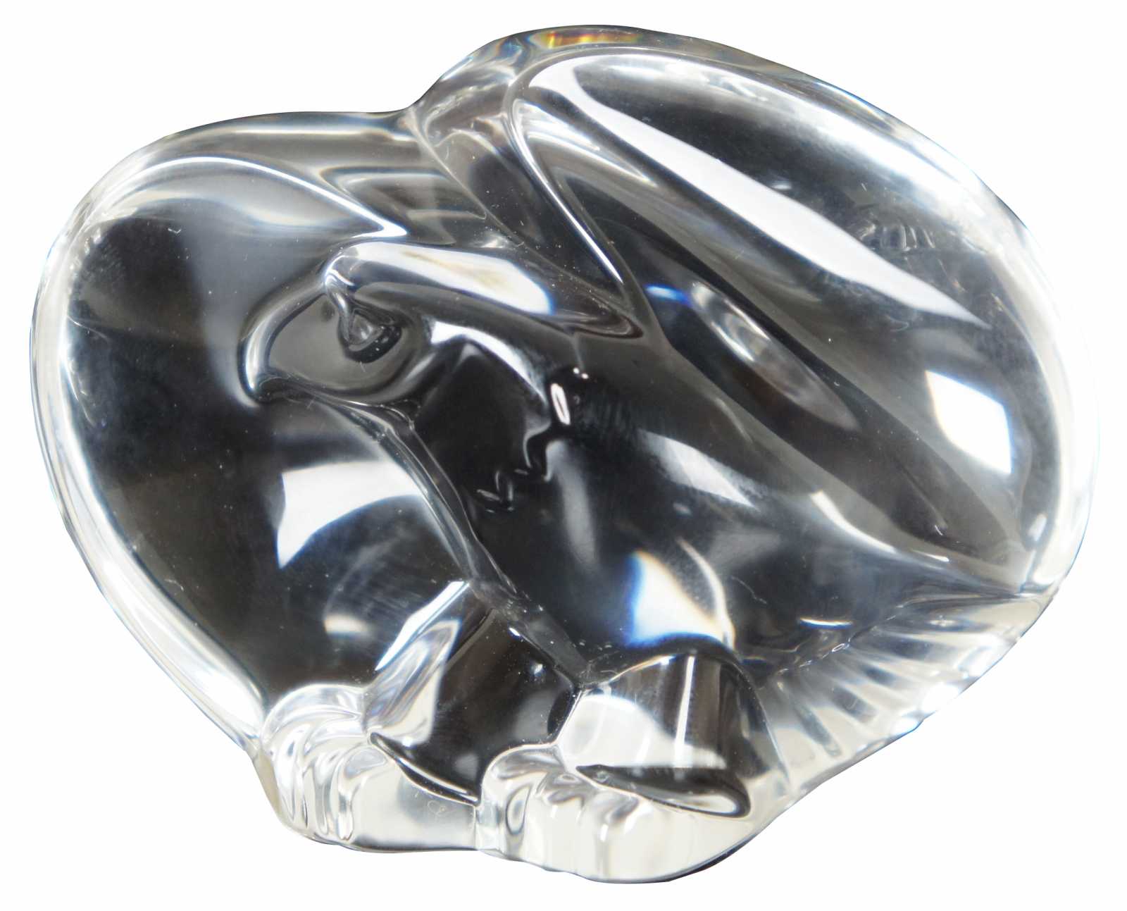 Limited edition Steuben glass American bald eagle hand cooler; includes original box.