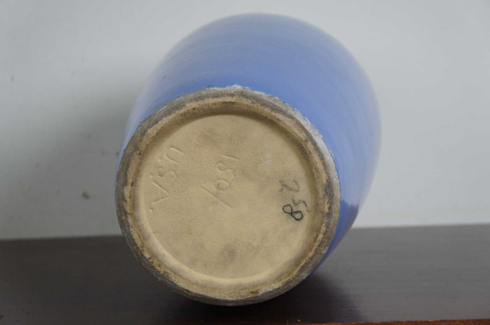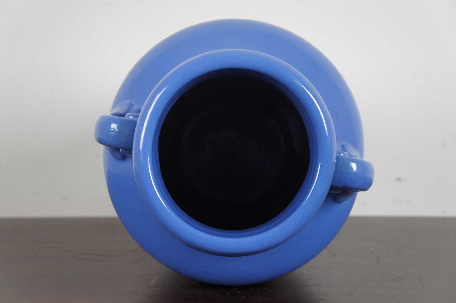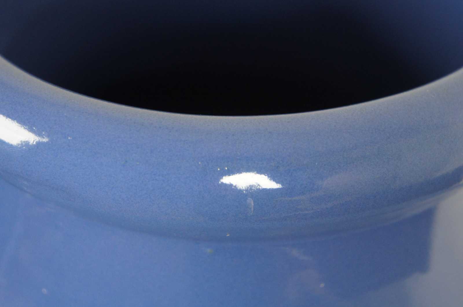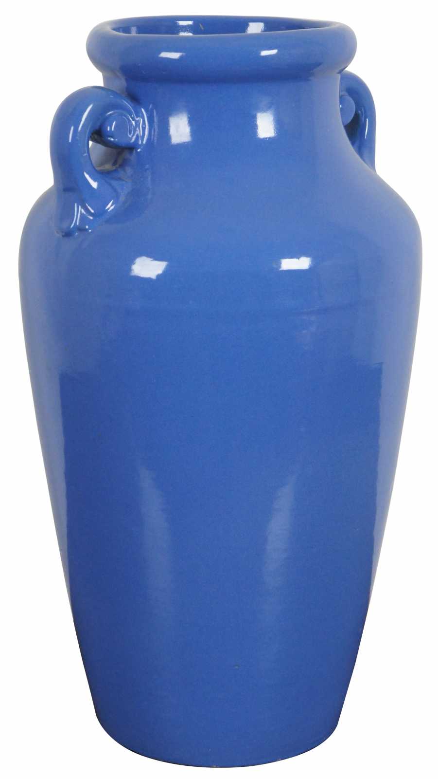 Vintage blue glazed floor vase 150 by Robinson Ransbottom with small scrolled handles.