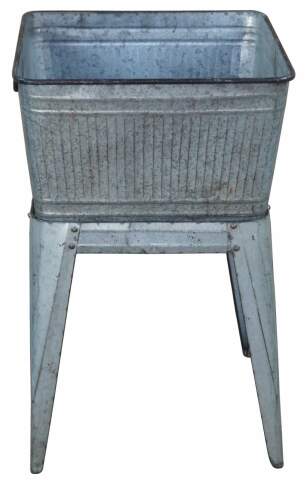 Vintage galvanized metal wash basin or beverage tub. Features an upper bucket with handles over tapered base.