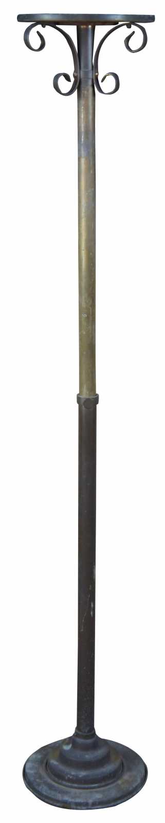 Vintage adjustable telescoping candle holder or plant stand. Made of iron featuring scrolled accents.