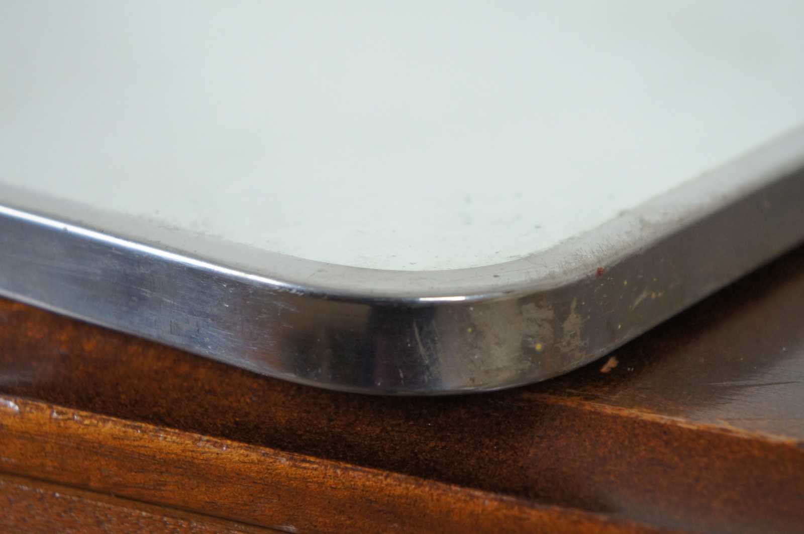 Vintage chrome edged Natcco Uni-Lite rectangular bathroom mirror. Made by the National Steel Cabinet Co. (NATCCO) of Chicago.