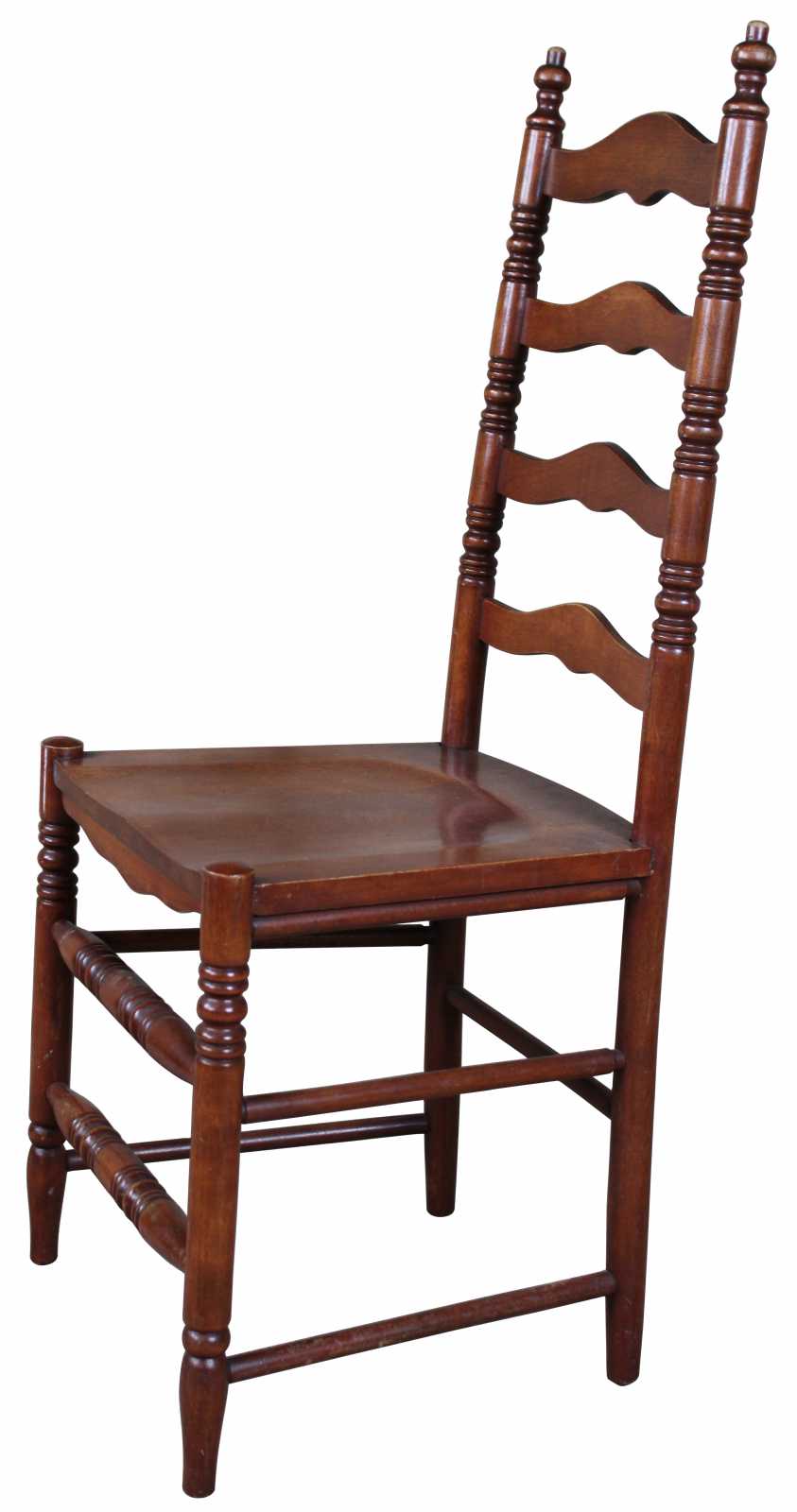 Four vintage Shaker style ladder back dining chairs. Made of Maple, featuring classic turned legs and supports.