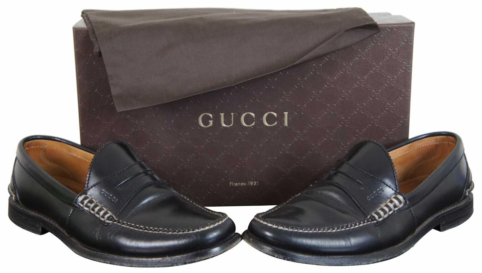 Gucci polished leather Camaleon men’s slip on loafer in nero black, product number 368442.