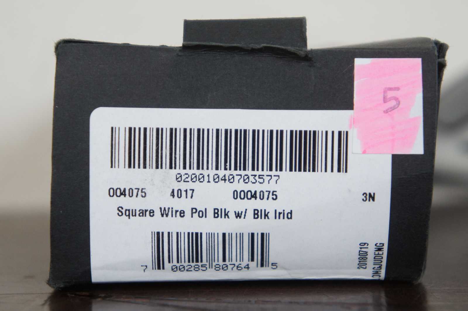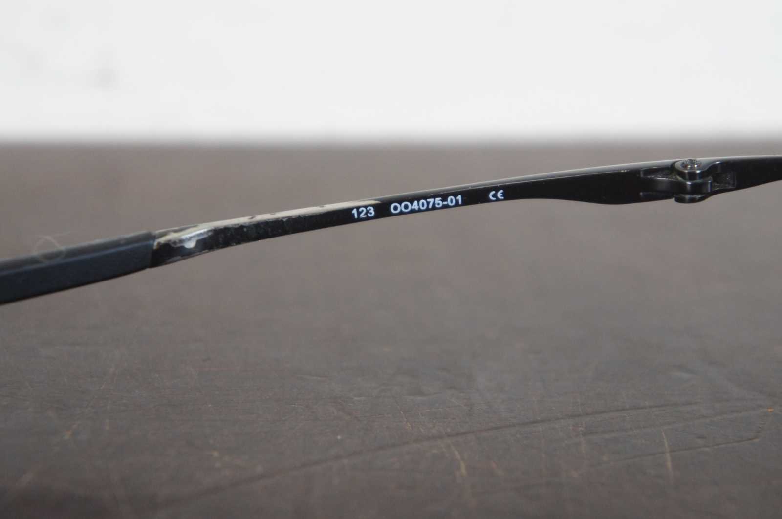 Oakley Square Wire polished black with black iridium sunglasses, product number 4075-01. Includes original cloth pouch and packaging.