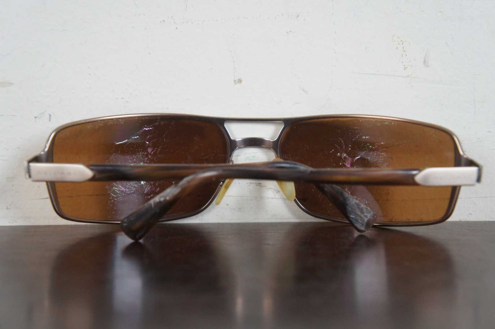 Bvlgari rectangular aviator style sunglasses with tortoise style ear pieces, silver frame and brown lenses, product 528 198/6U Italy