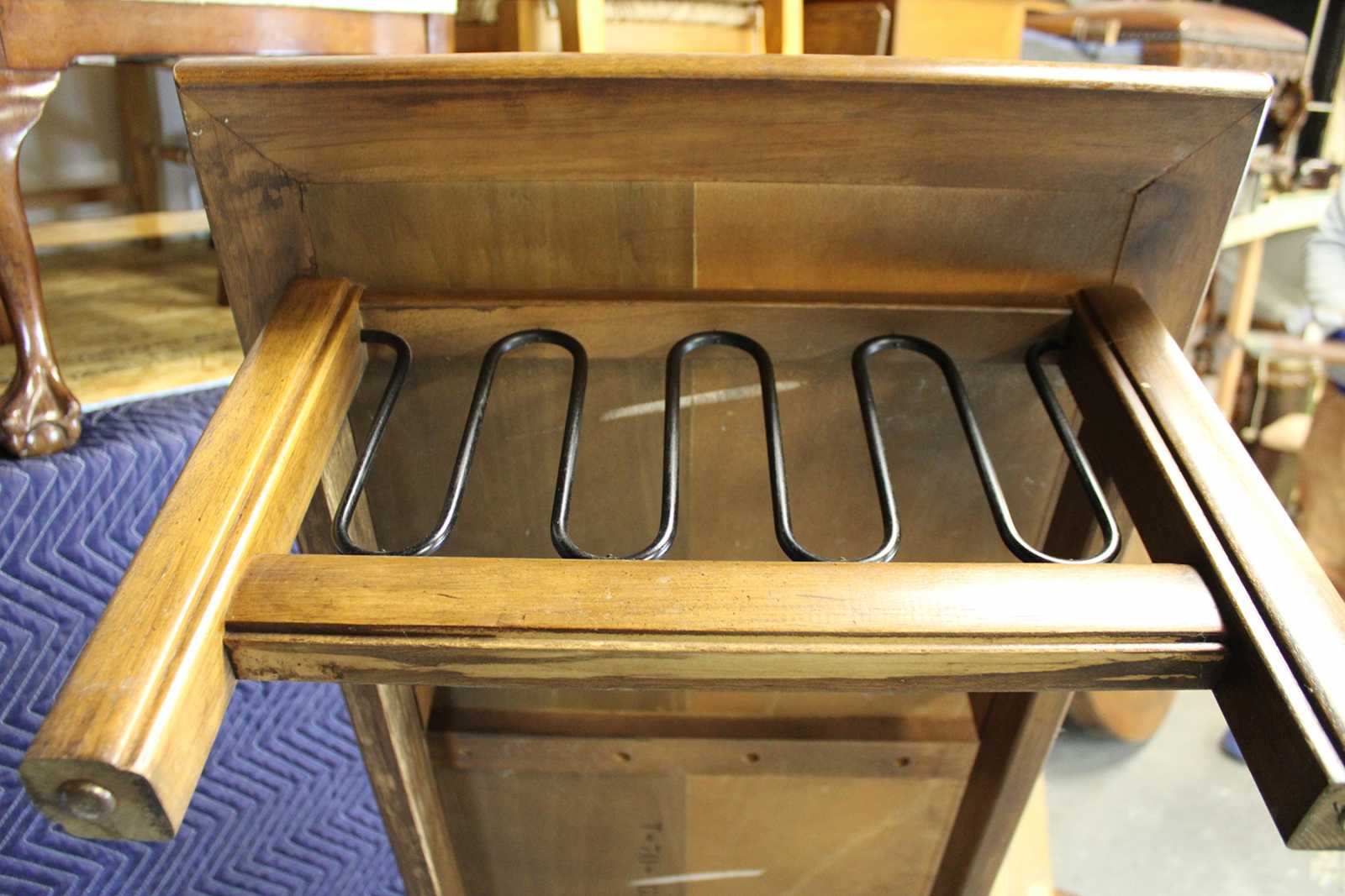Mid Century Modern walnut coffee table with inset tiled top. Features a serpentine wire design along the sides. Originally purchased from Rikes Furniture in Dayton, Ohio.