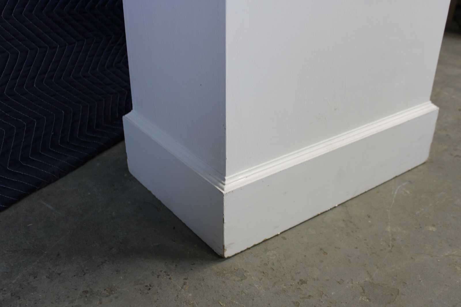 Two vintage rectangular wood pedestals. Painted white with molding along the bottom.