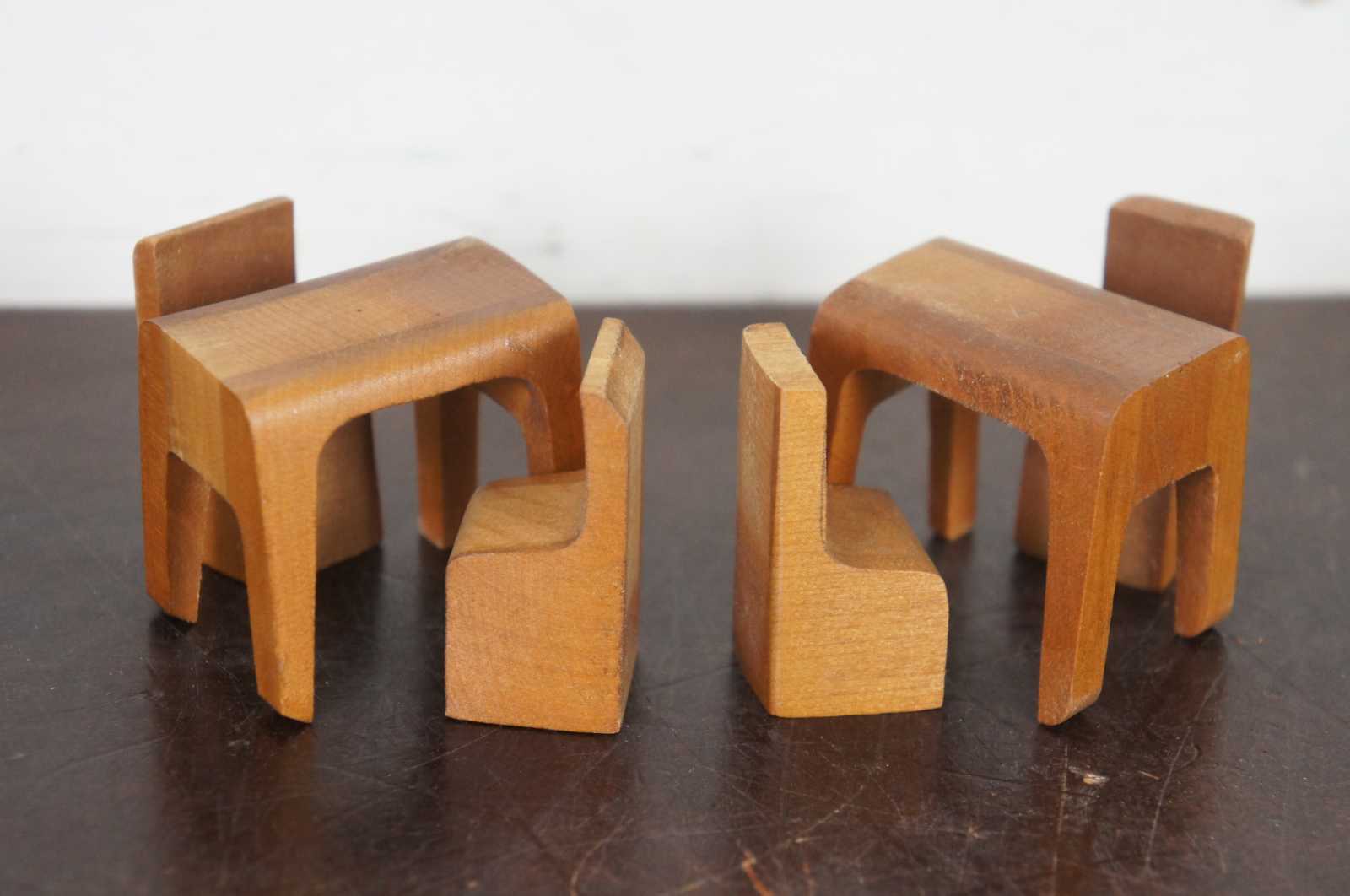 Puzzle Solved/Large Table - 5.75” x 1.75” x 2.25” / Large Chair -1.75” x 1.75” x 4.375” / Small Chair - 0.75” x 0.875” x 1.75” (Width x Depth x Height)