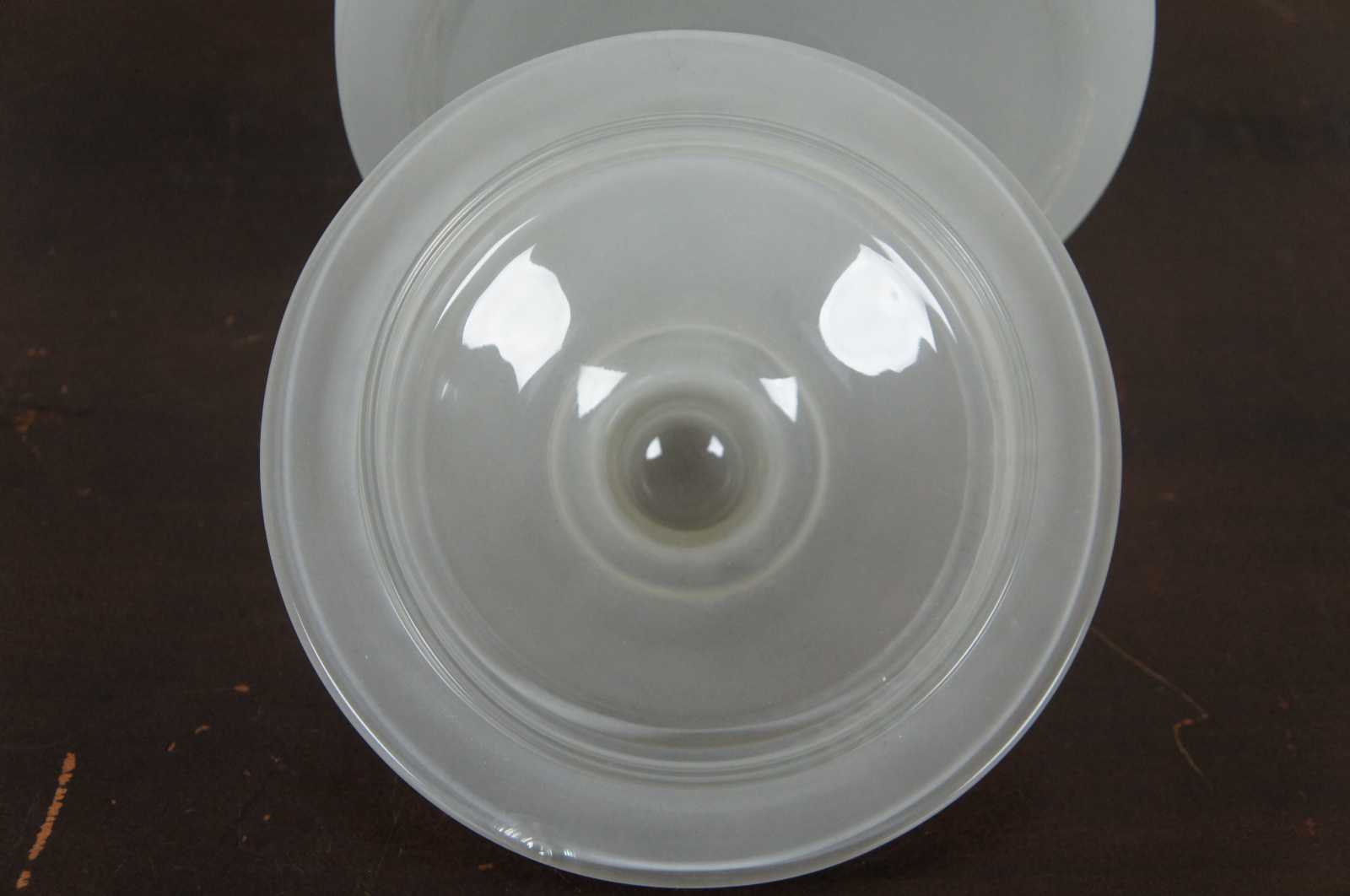 Vintage 1985 Princess House, Heritage Crystal, frosted glass cookie jar with a delicate flower design across the side.
