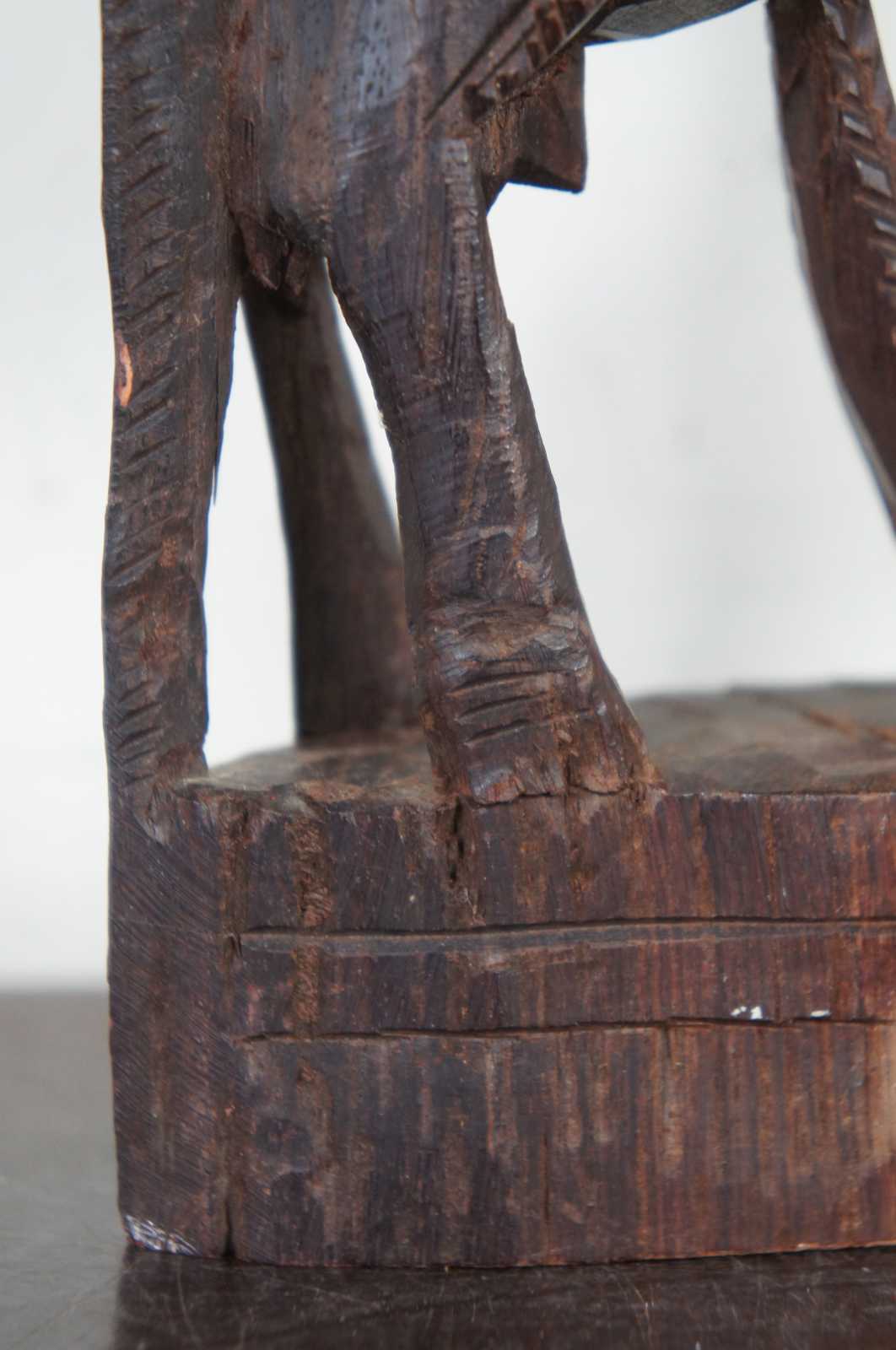 Vintage primitive style hand carved folk art horse and rider sculpture.