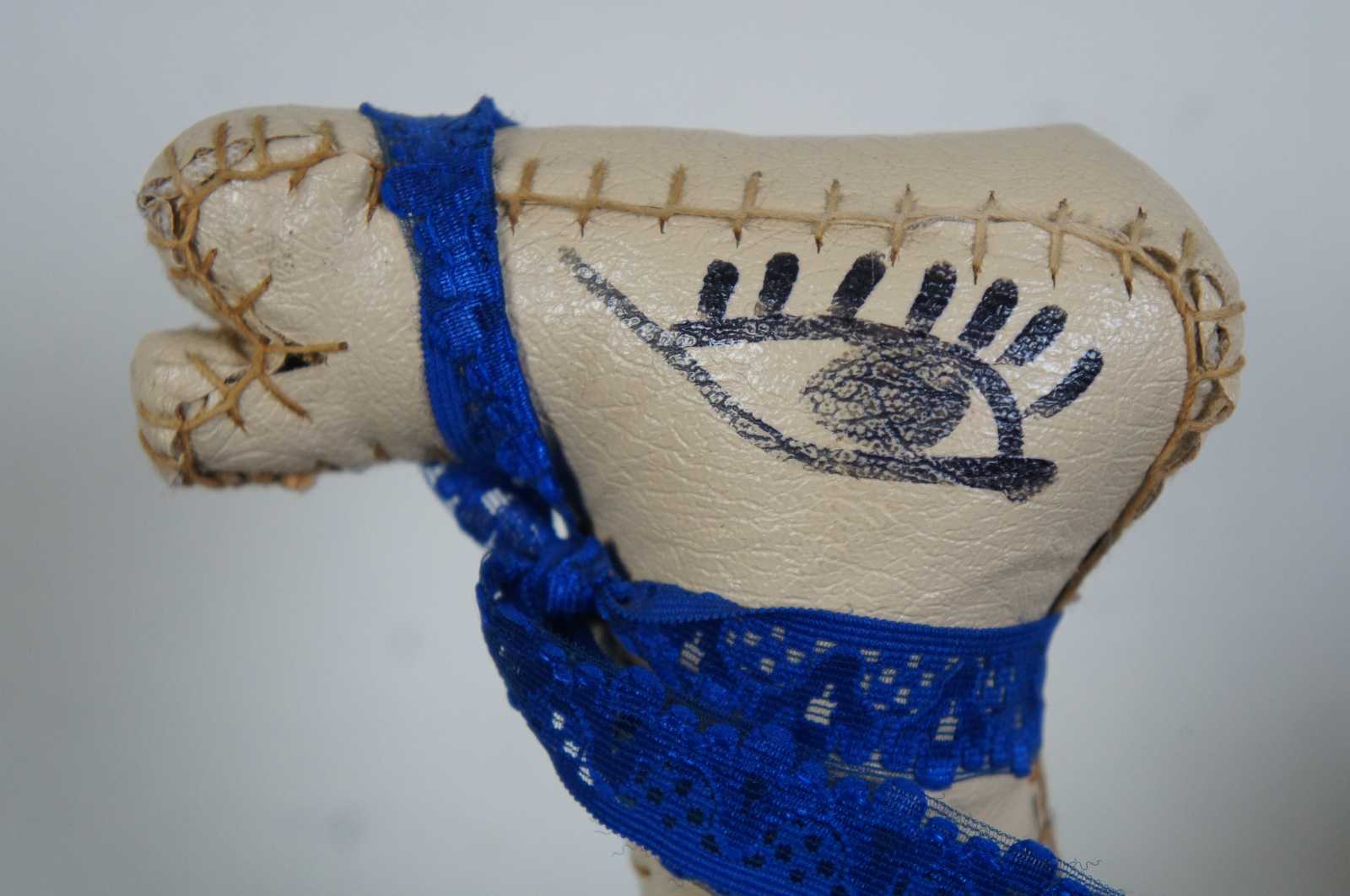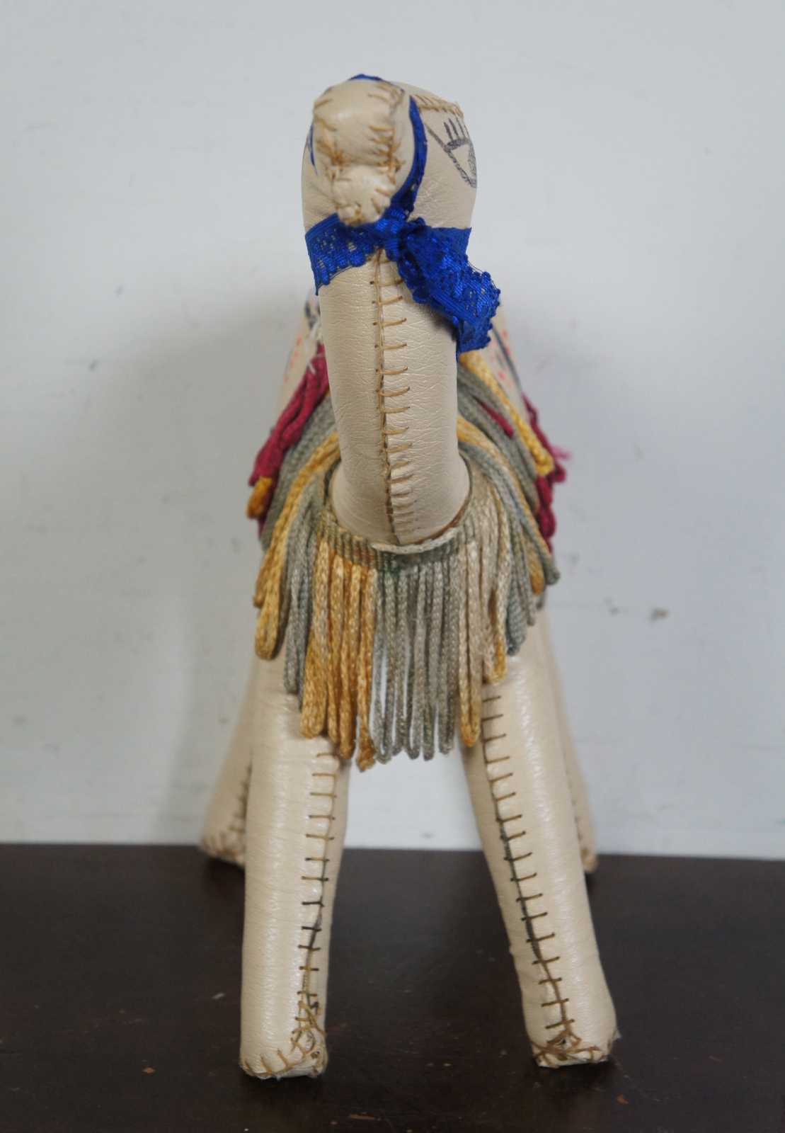 Vintage hand stitched and painted stuffed leather Arabian dromedary camel figure.