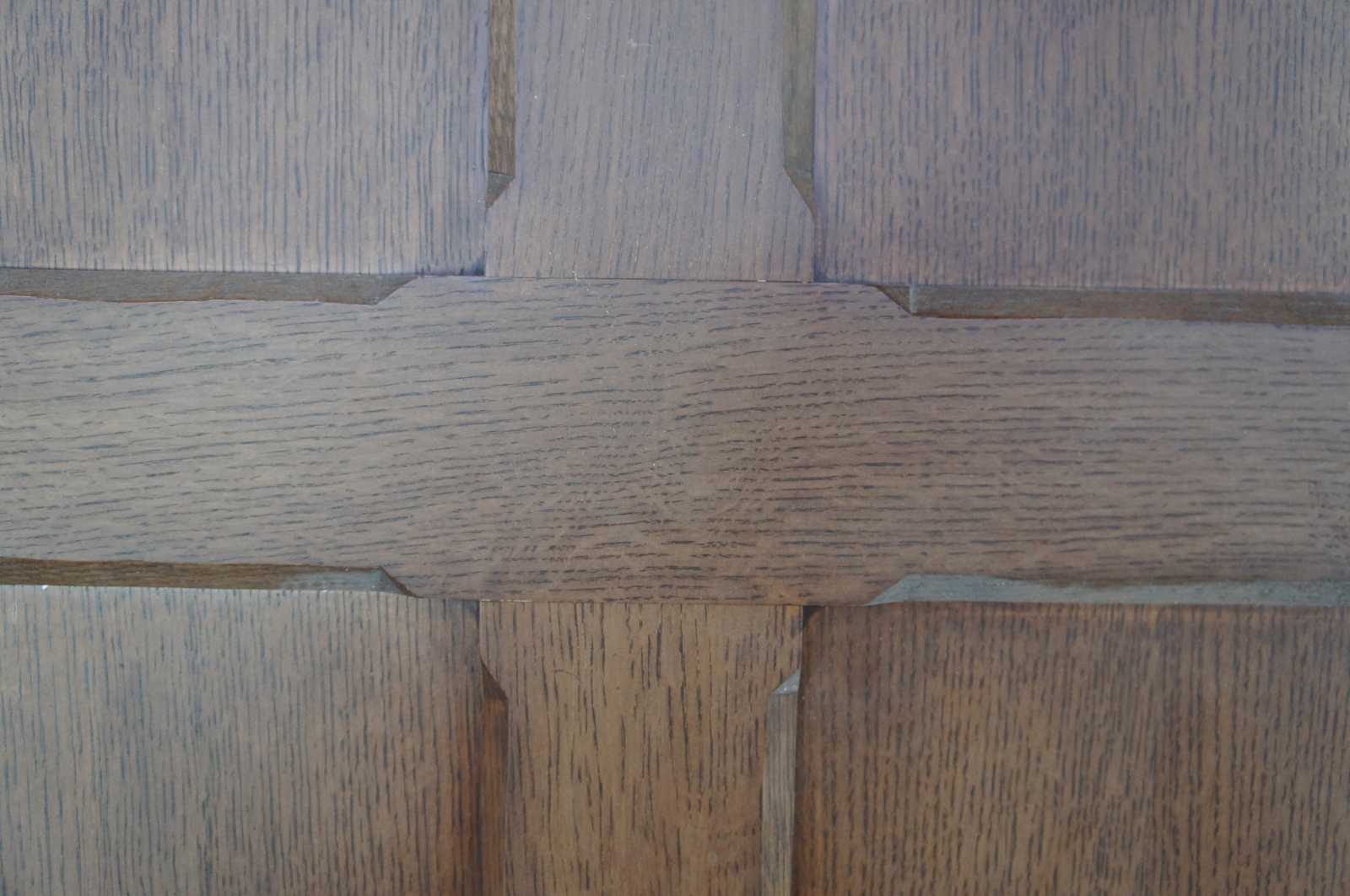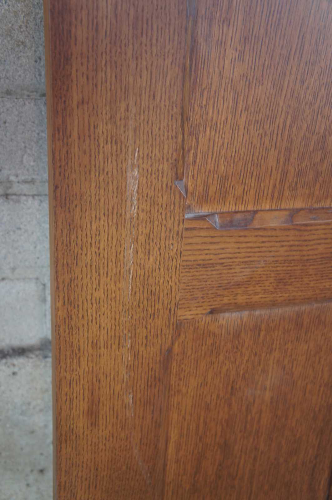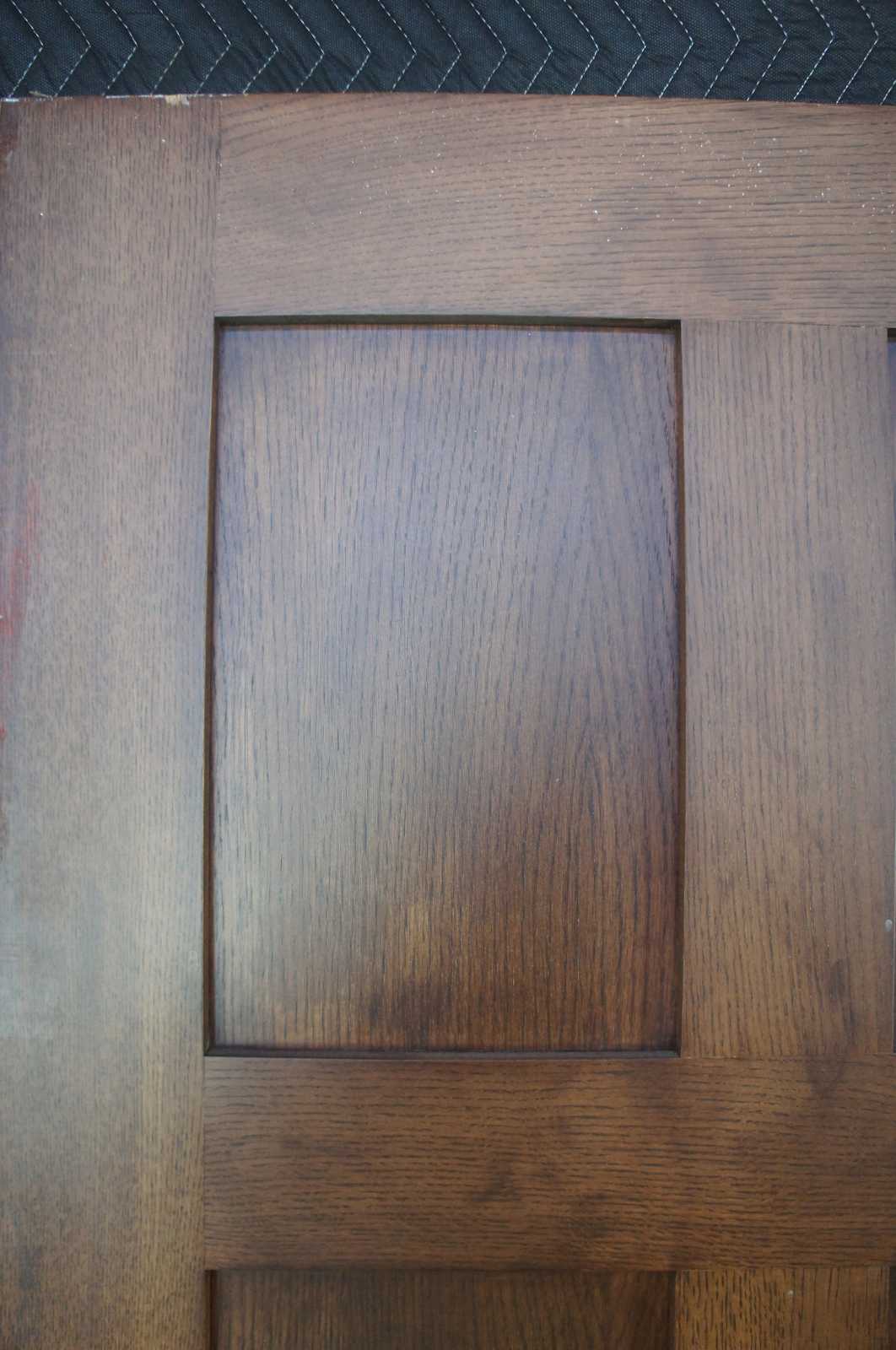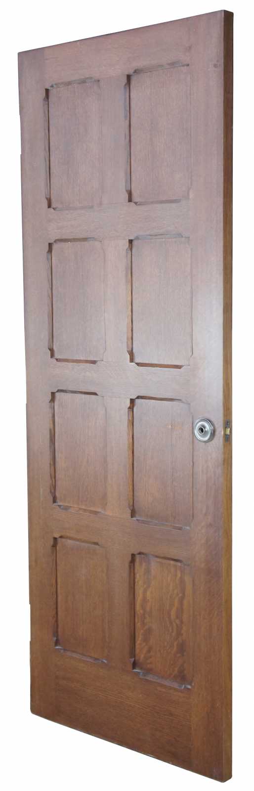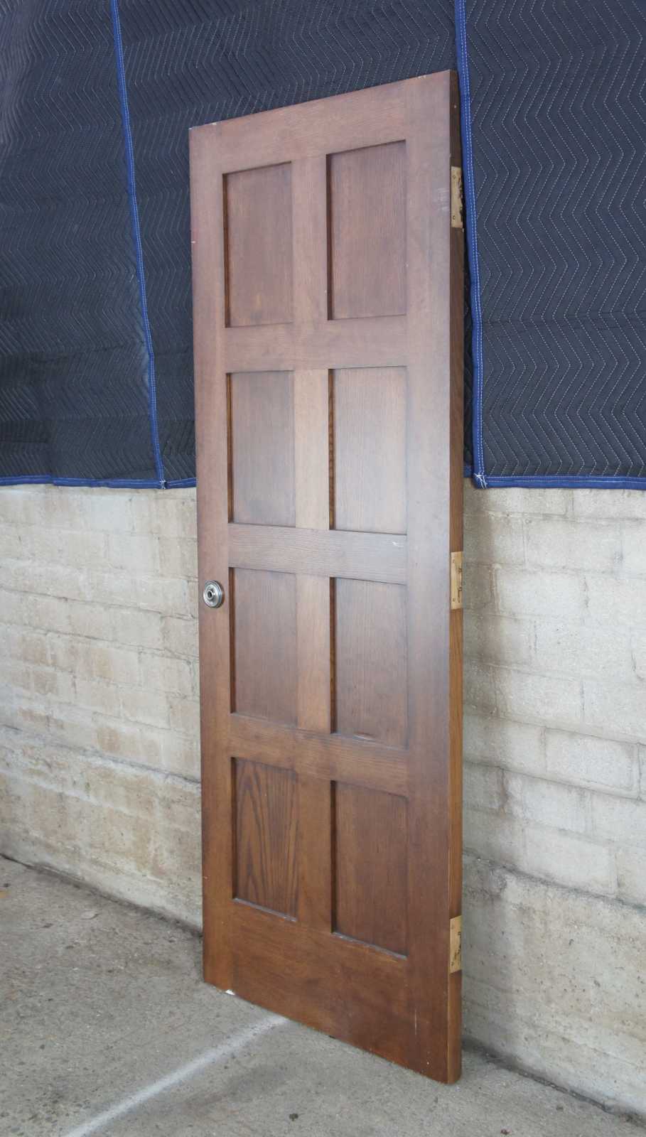 Vintage oak panel door. Features eight panels in a grid pattern with Spanish Revival design.
