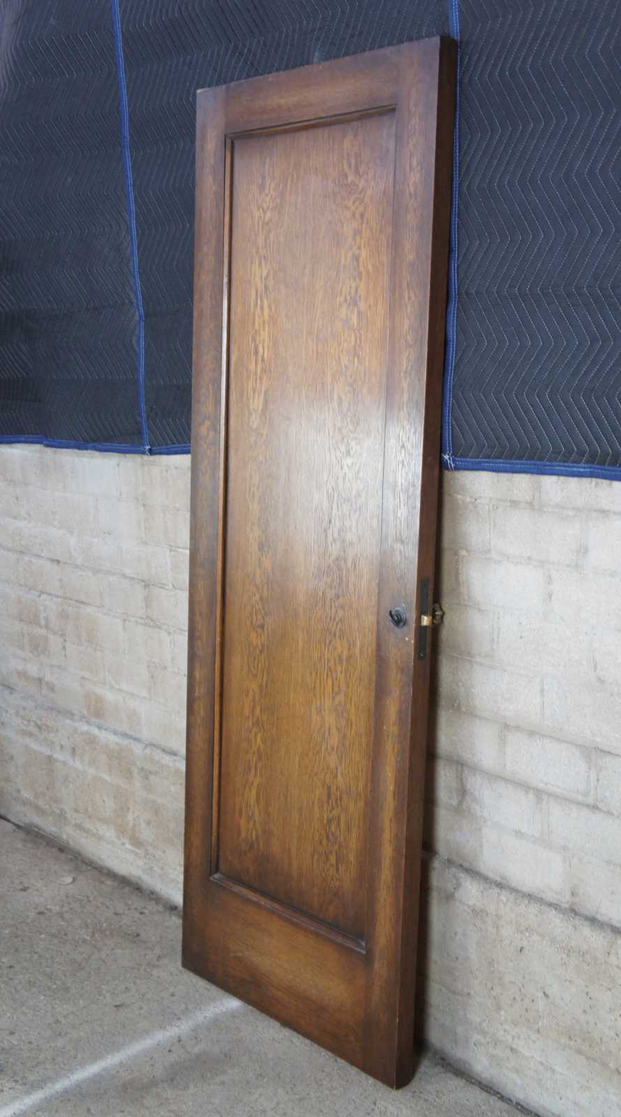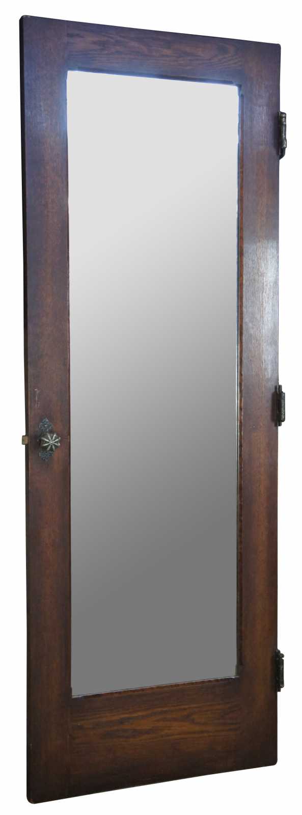 Early 20th century oak door. Features a large crental mirror and Spanish Revival hammered hardware. Reclaimed from one of the first homes built in Oakwood, Ohio by Harry I Schenck, circa early 1900s. Great for use as a dressing mirror. 5 Available