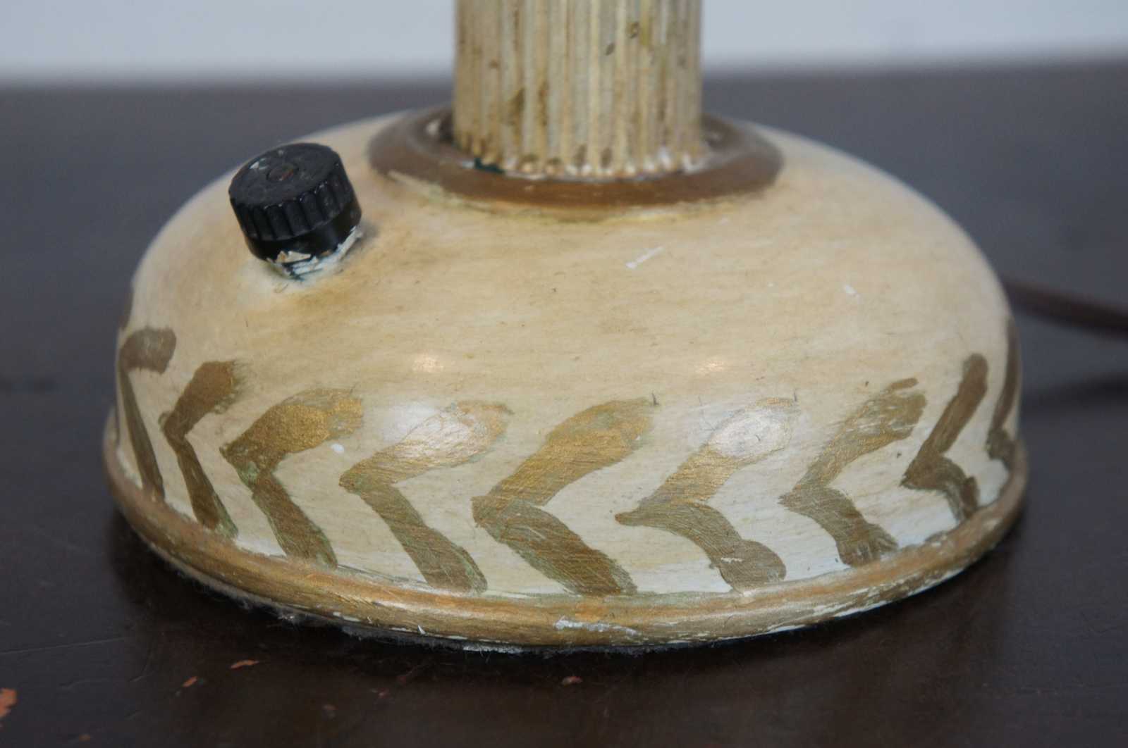 Good Overall - Gentle wear to paint; top edge of shade dented; bulb socket slightly crooked; height does not adjust; see pictures