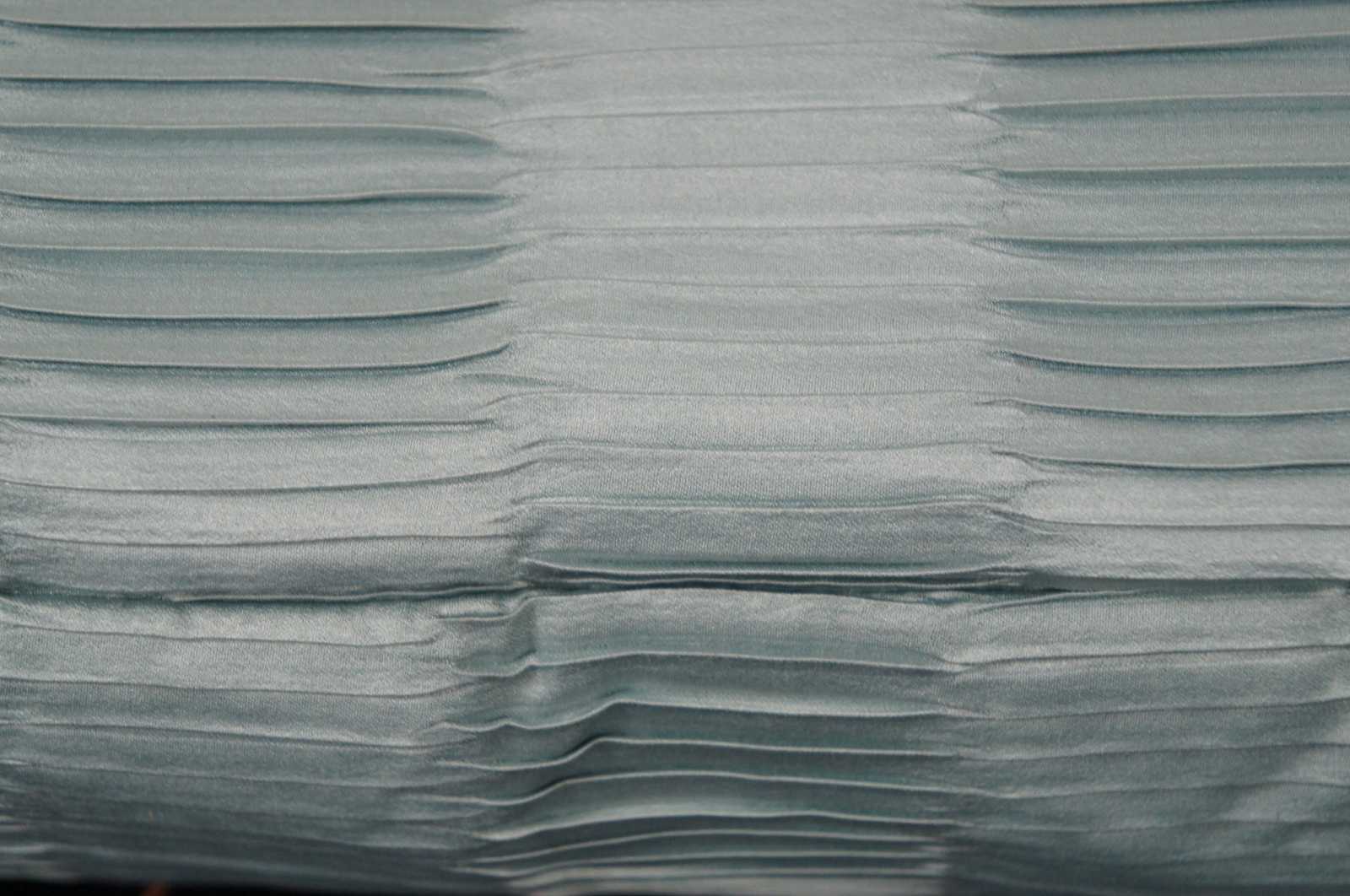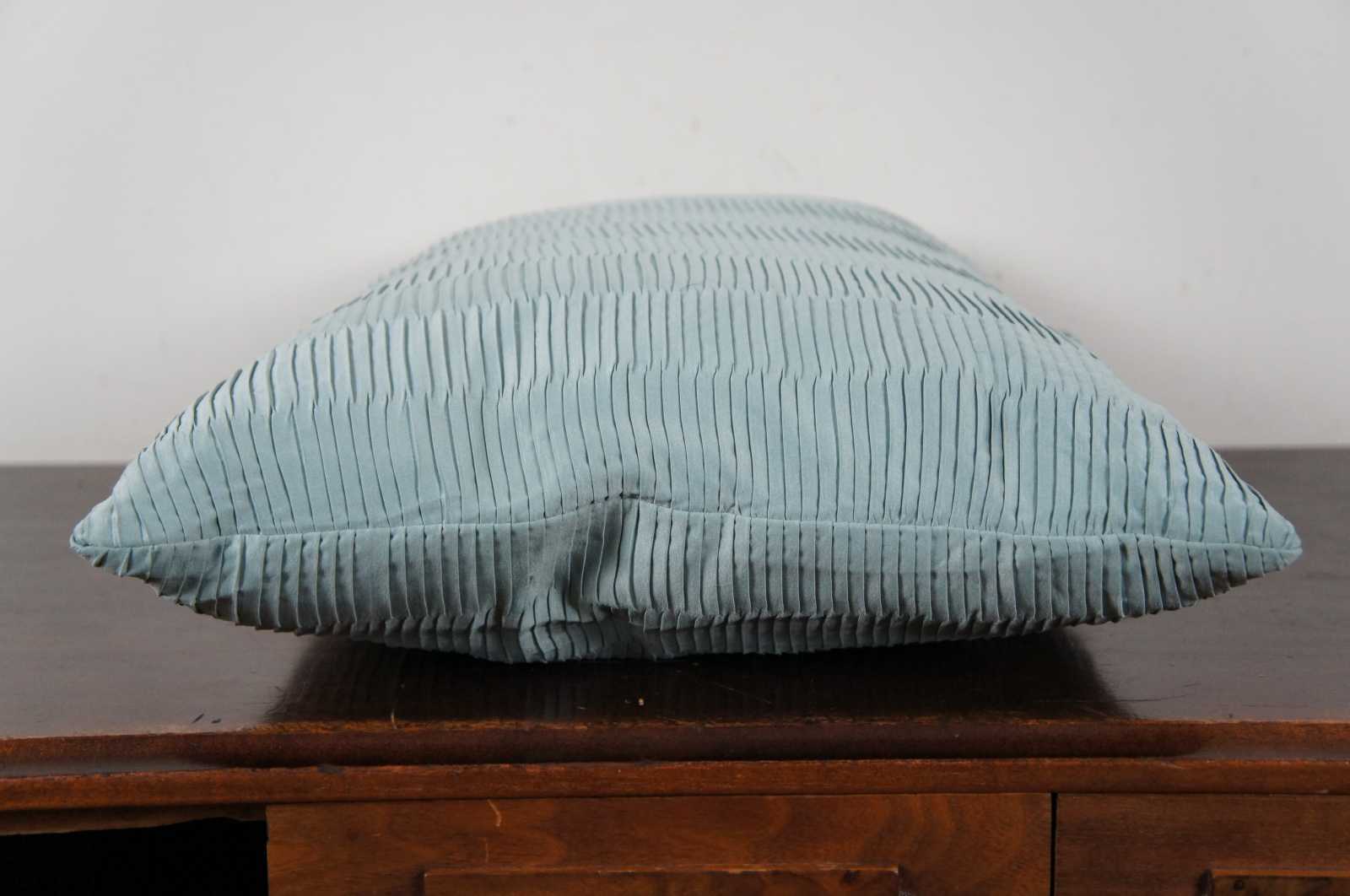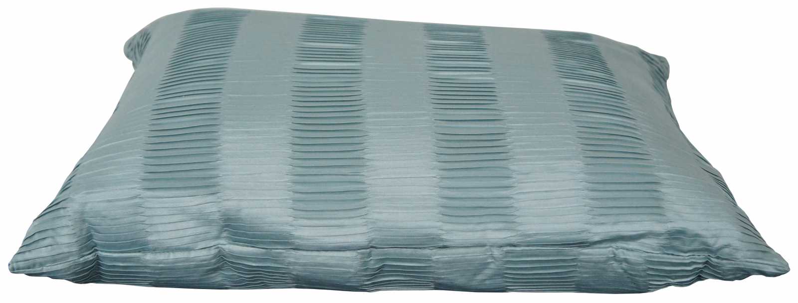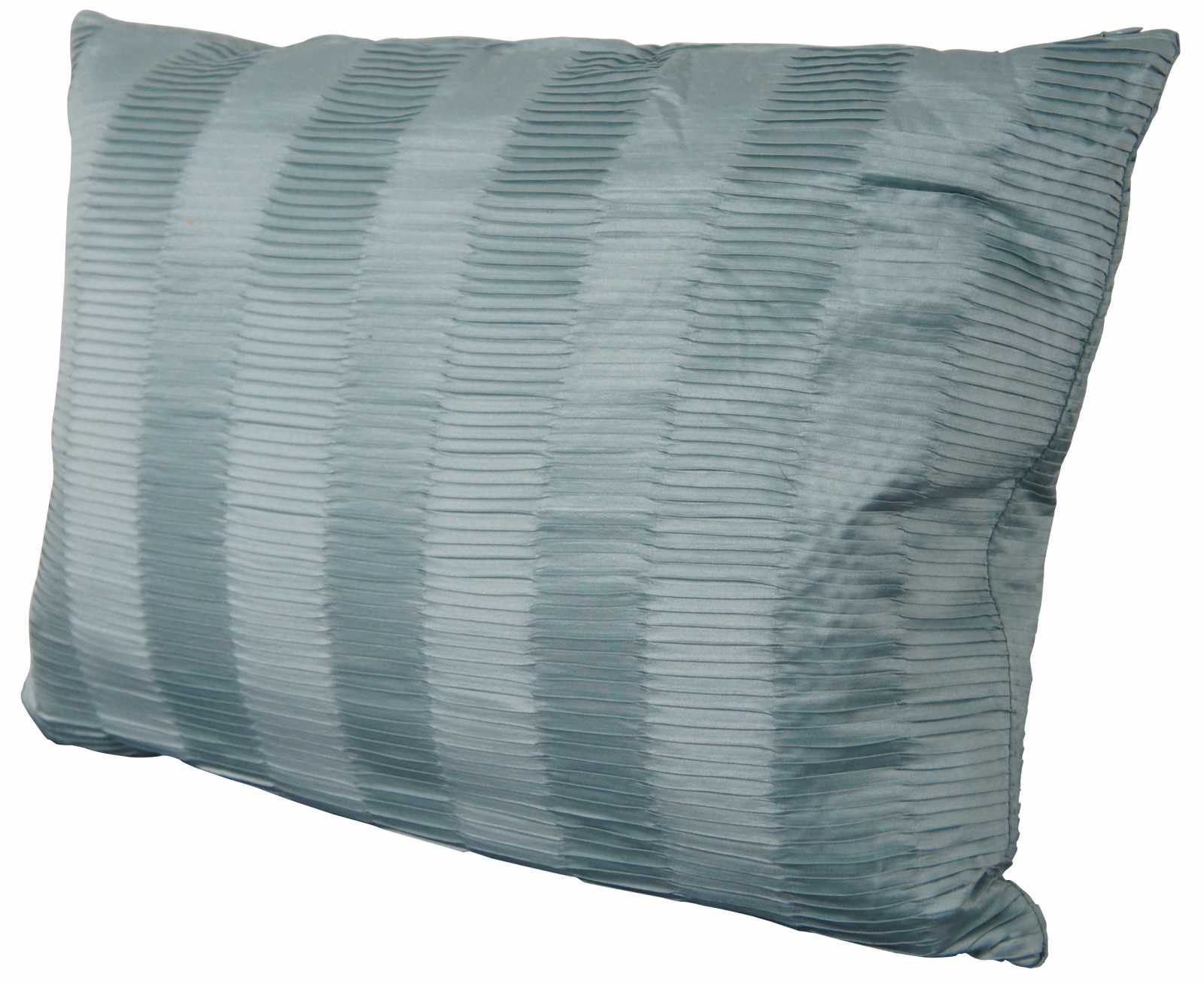 Light turquoise silk rectangular down filled throw pillow in a pattern of ruched stripes.